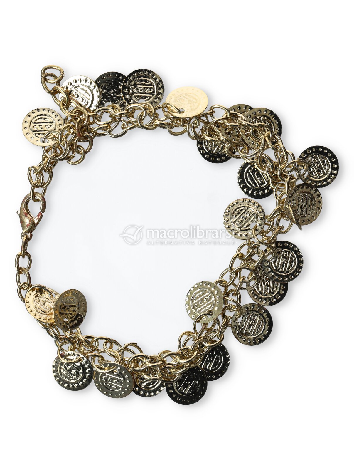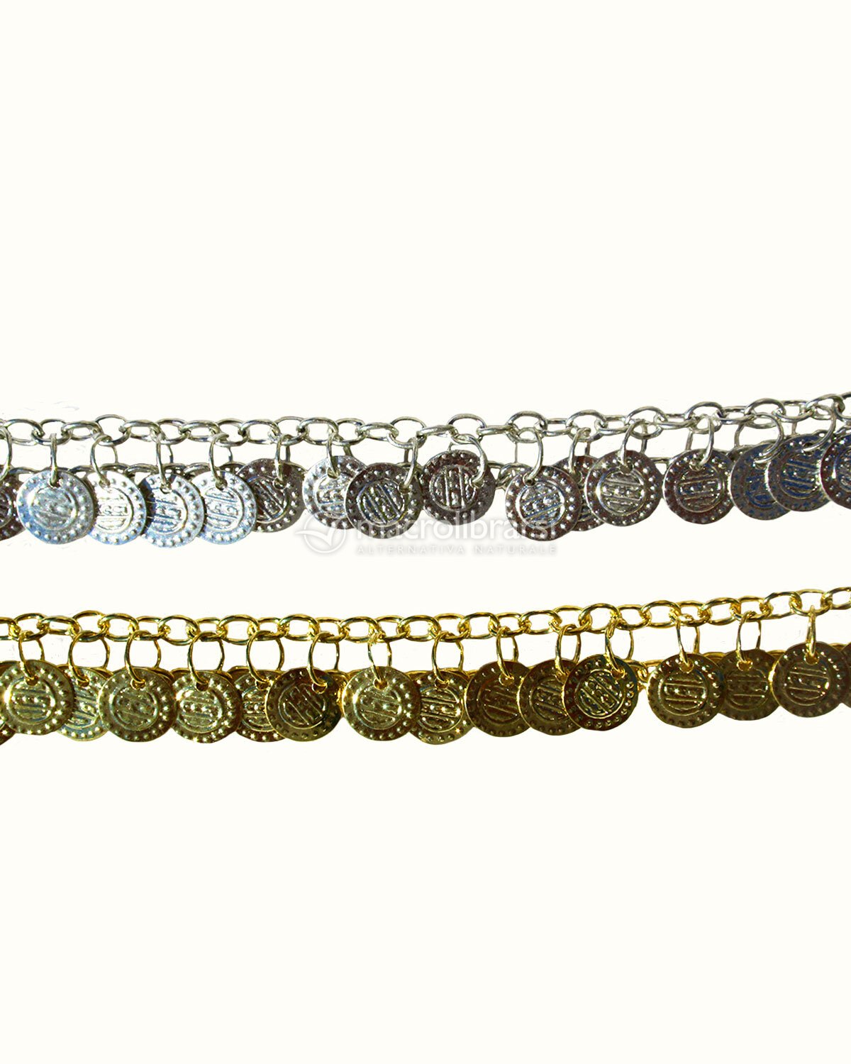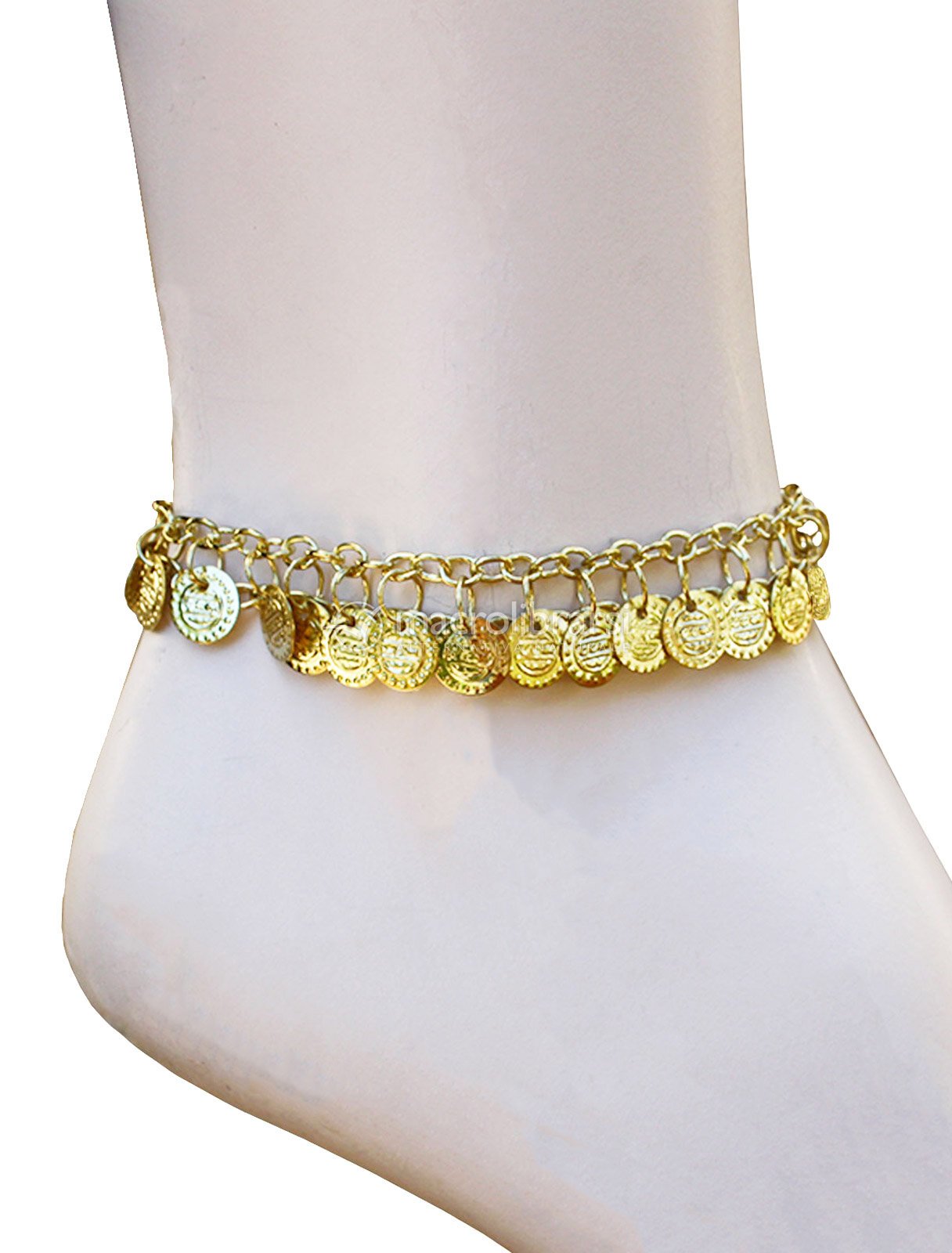 Una bellissima cavigliera dallo stile orientale color oro, con catenella a cascata di monetine decorate.