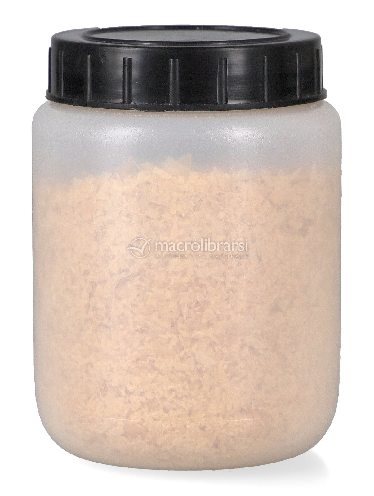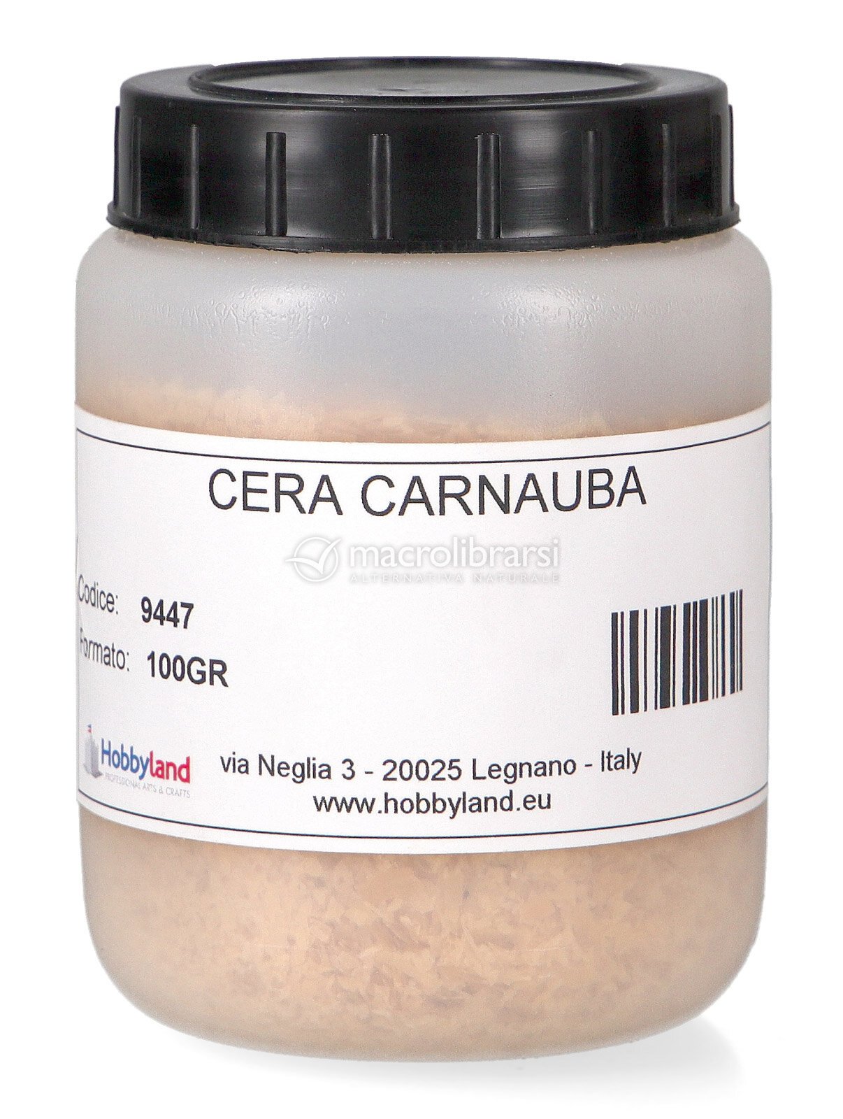Cera vegetale in scaglie estratta dalle foglie della palma Copernicia Cerifera, nativa del Brasile.