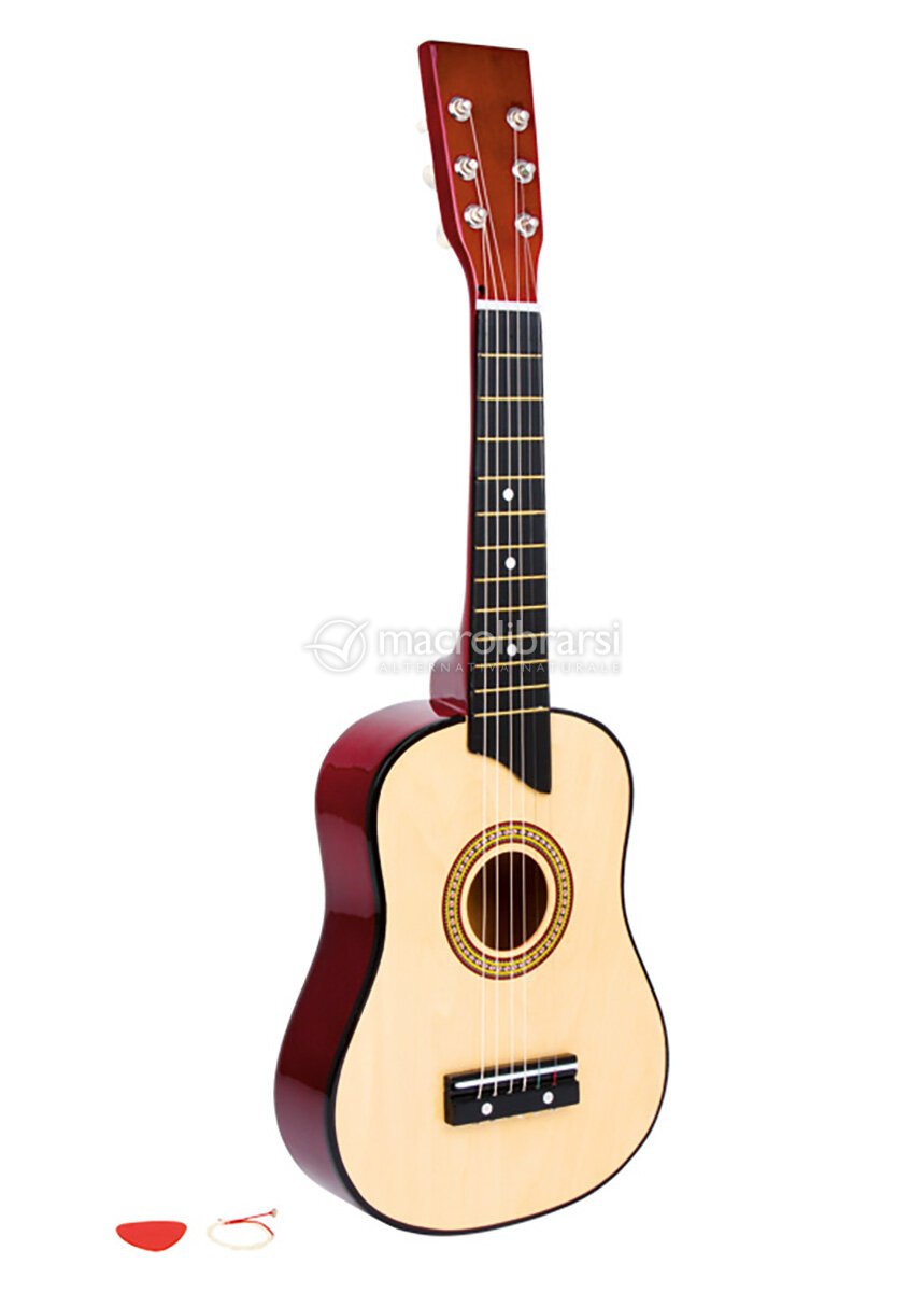 Per risvegliare l'interesse per gli strumenti musicali e la musica, chitarra acustica in bel stile. Con 6 corde metalliche e pennetta per evocare divertimento dal mondo dei suoni.