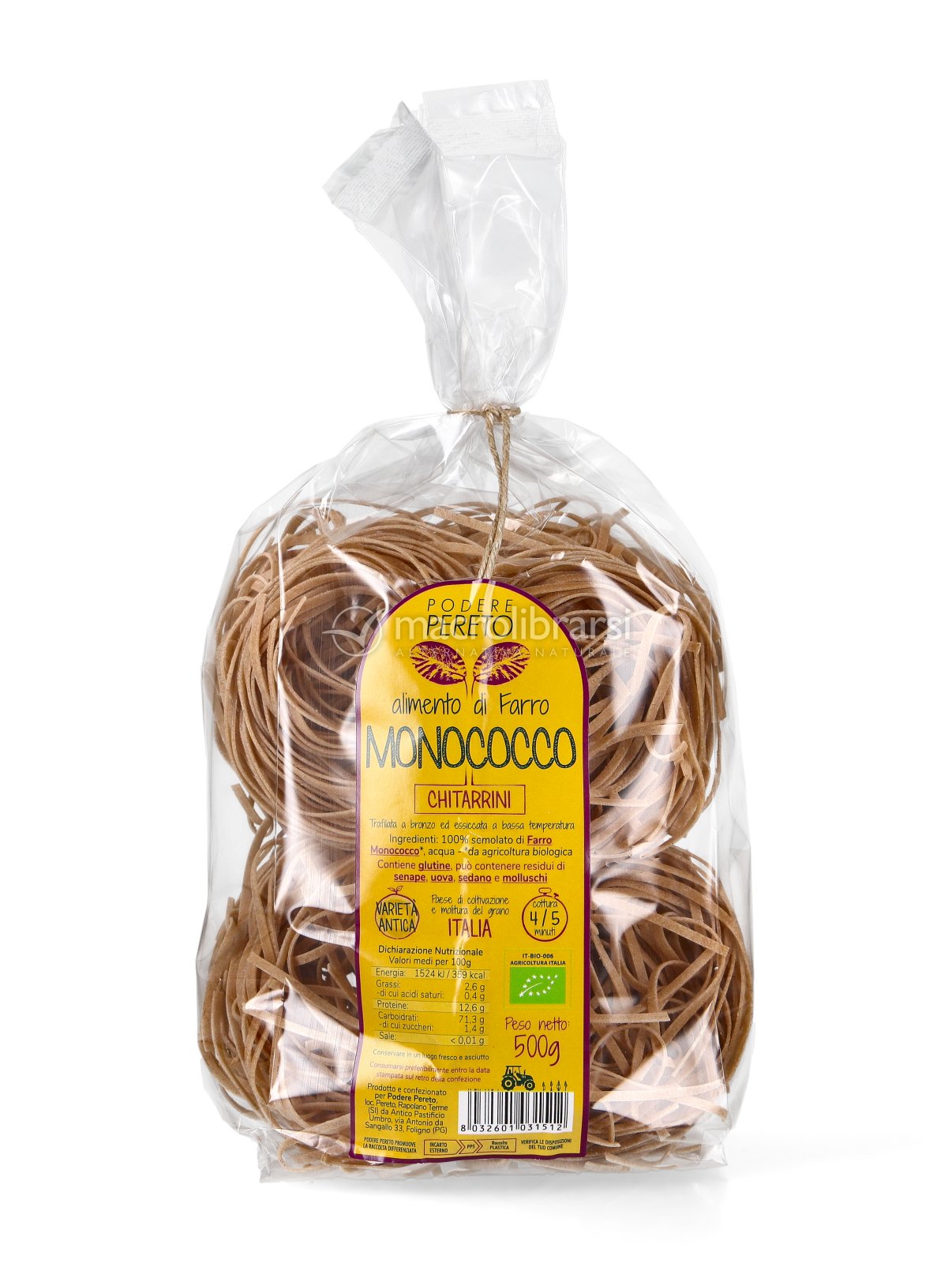 Il Farro Monococco viene coltivato nei campi di Podere Pereto e, dopo la raccolta e la pulitura, viene macinato a pietra a chicco intero per ricavarne un semolato. Ha un basso contenuto di glutine e un amido in forma altamente solubile: grazie al suo profilo nutrizionale è adatto a tutta la famiglia e risulta spesso più assimilabile anche per chi è sensibile al glutine.