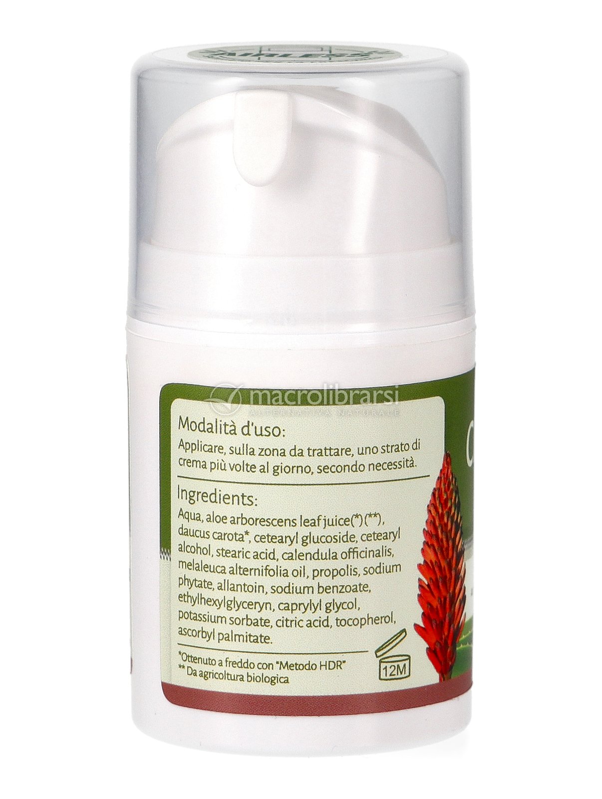 Il cuore della formula è l’Aloe Arborescens biologica italiana, riconosciuta per l’elevata presenza di attivi funzionali, estratta a freddo tramite “Metodo HDR®” per preservarne l’integrità. In sinergia con carota, calendula, propoli e tea tree oil, la crema offre un supporto mirato al benessere della pelle, ideale quando serve idratazione e comfort con una sensazione di pelle curata e protetta.