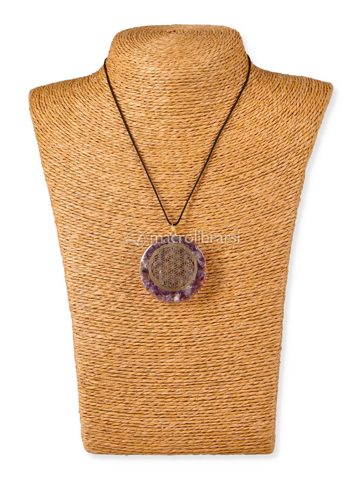 Un prezioso gioiello in Orgonite, Ametista e Cristallo di Rocca con inciso il Fiore della Vita, simbolo di equilibrio, rinascita e armonia.