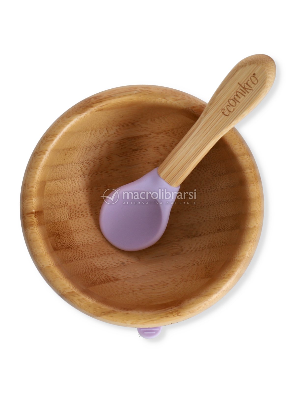 Per impedire che cada o si rovesci, alla base della ciotola è presente una ventosa lilla in silicone alimentare che può essere rimossa, priva di BPA e altre sostanze chimiche pericolose.