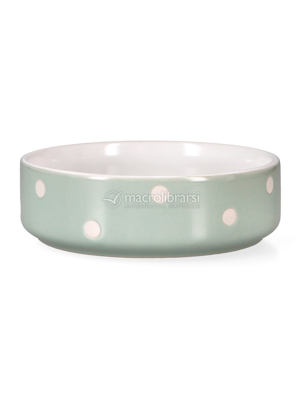 Ciotola in ceramica color salvia con delizioso motivo a pois, una soluzione durevole, pratica e divertente per il cibo e l'acqua di gatti, cuccioli e cani di piccola taglia.