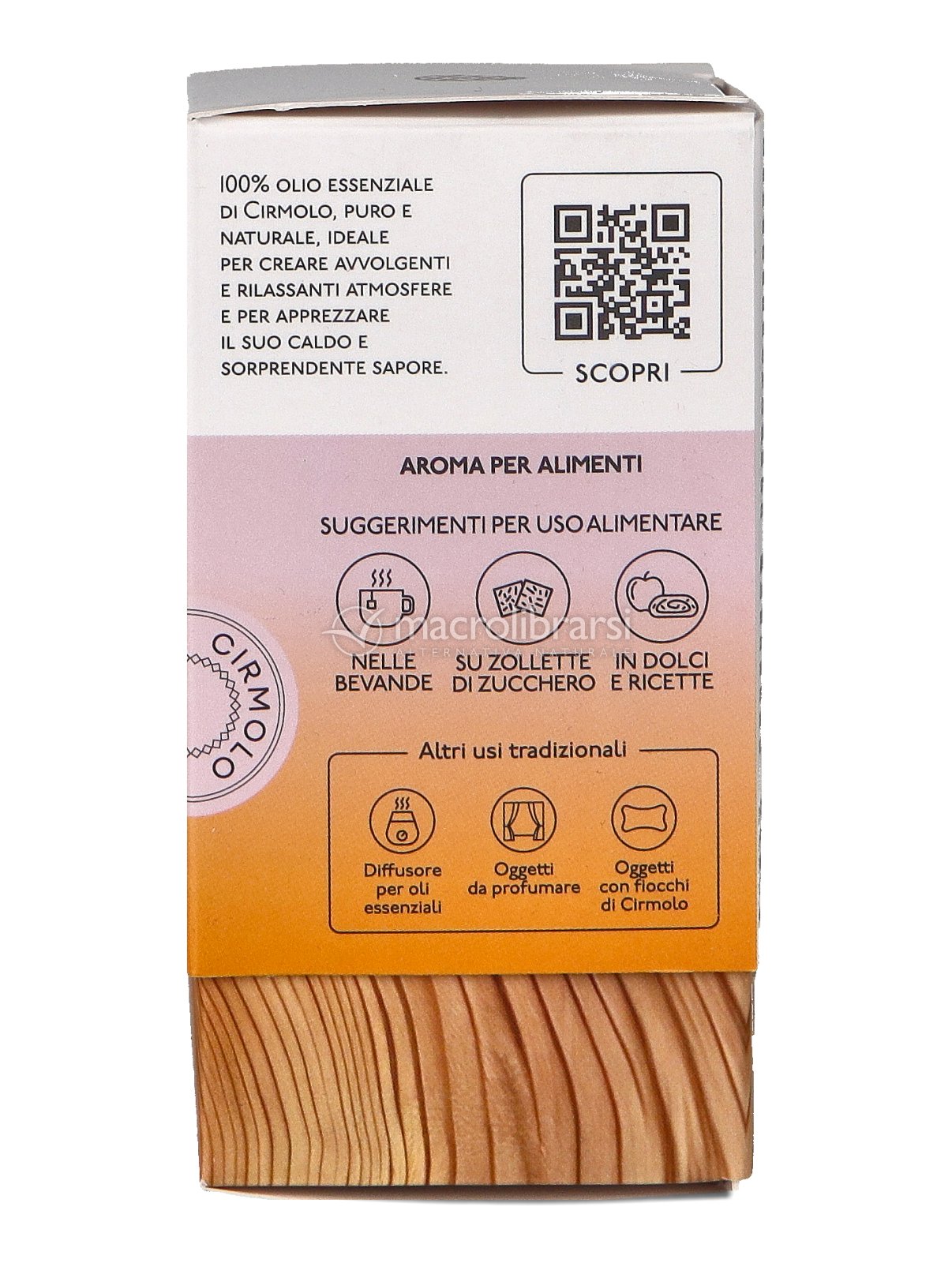 Per fruire dei suoi benefici aromaterapici, l'olio essenziale di cirmolo viene tradizionalmente rilasciato negli ambienti con gli appositi diffusori per oli essenziali, utilizzato per rinnovare la profumazione di oggetti di legno o con fiocchi di cirmolo oppure aggiunto in poche gocce a tessuti o altri materiali che si desiderano profumare, anche per un rilascio duraturo.