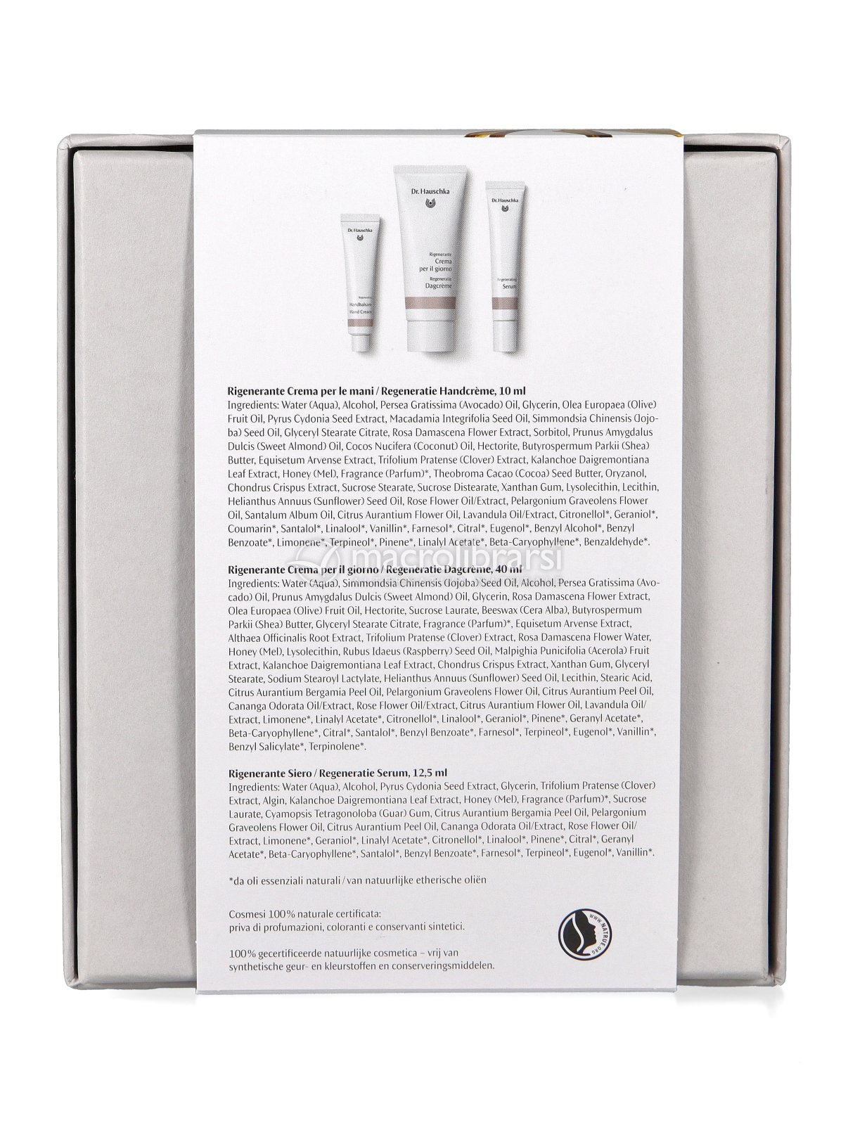 Confezione | Crema per le mani Rigenerante (10 ml), Crema per il giorno Rigenerante (40 ml), Siero Rigenerante (12,5 ml) |