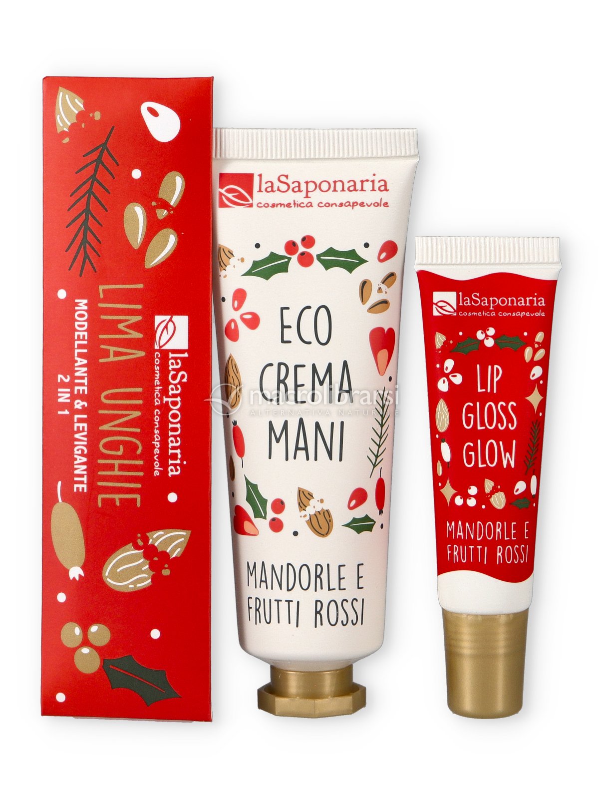 Il cofanetto per le feste "Mandorle e frutti rossi" l'ho trovato veramente un bel regalino da fare per mia nipote adolescente. Contiene una crema corpo con i brillantini, lima unghie, lucidalabbra e crema mani. Il formato è piccolo, ma perfetto per fare un regalino utile da portare con sé ovunque. Acquistato a un ottimo prezzo e i prodotti sono di buonissima qualità. Ne suggerisco l'acquisto.