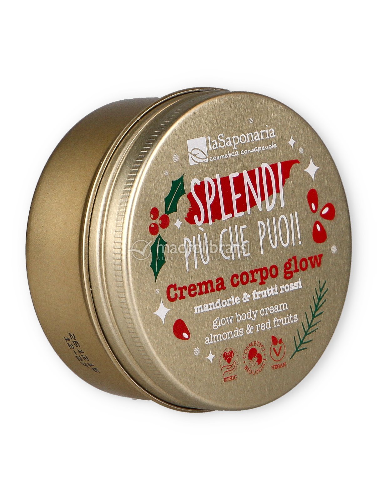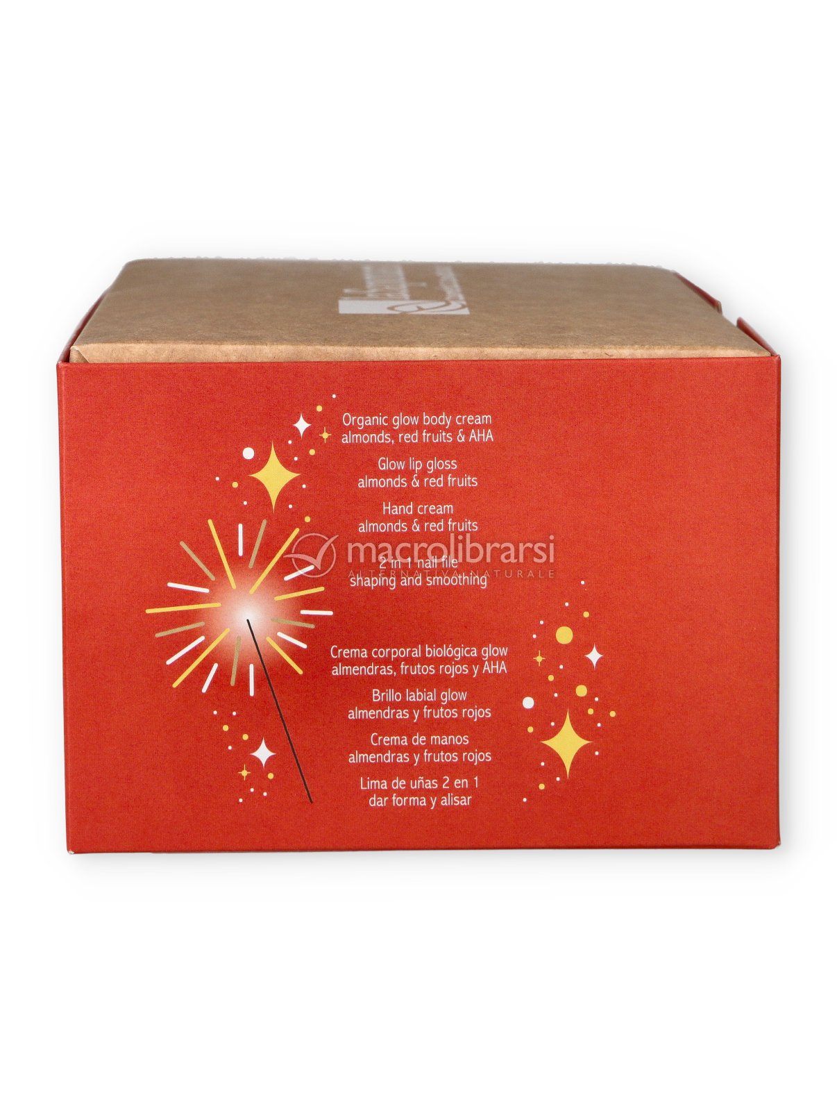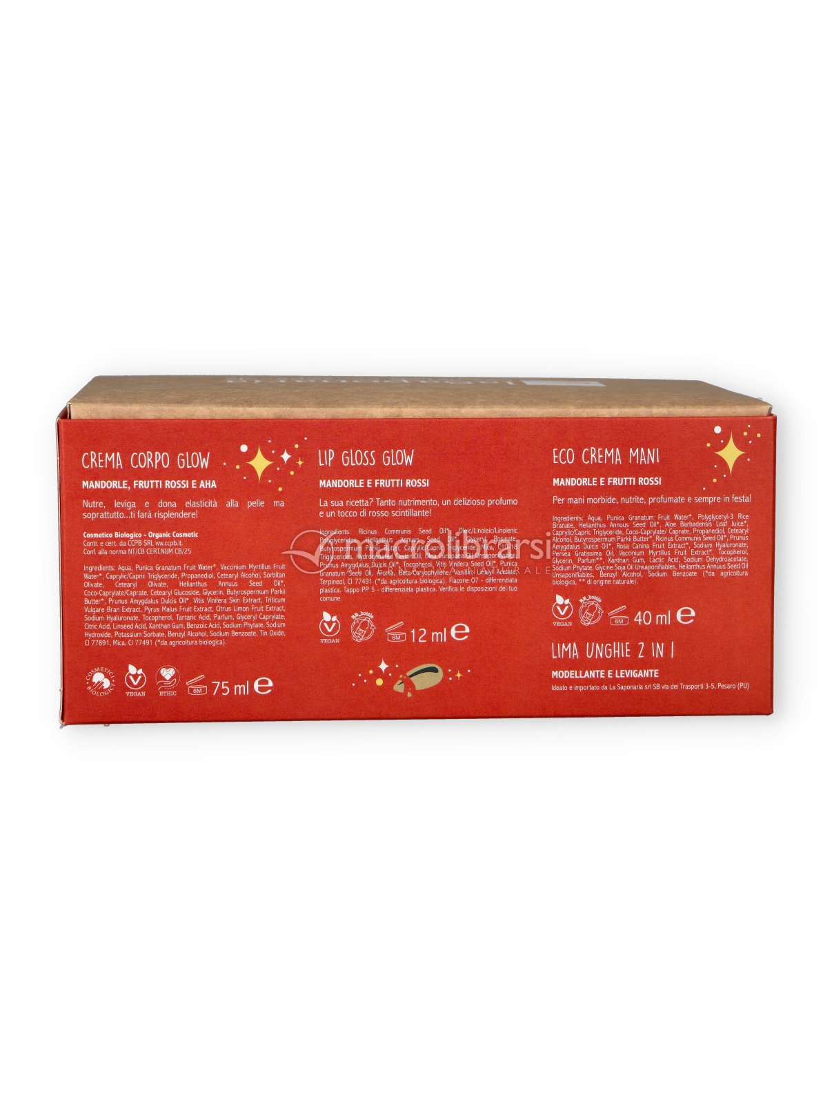 Confezione | Crema corpo Glow (75 ml) + Lip Gloss Glow (12 ml) + Eco Crema Mani (40 ml) + Limetta unghie Festa |