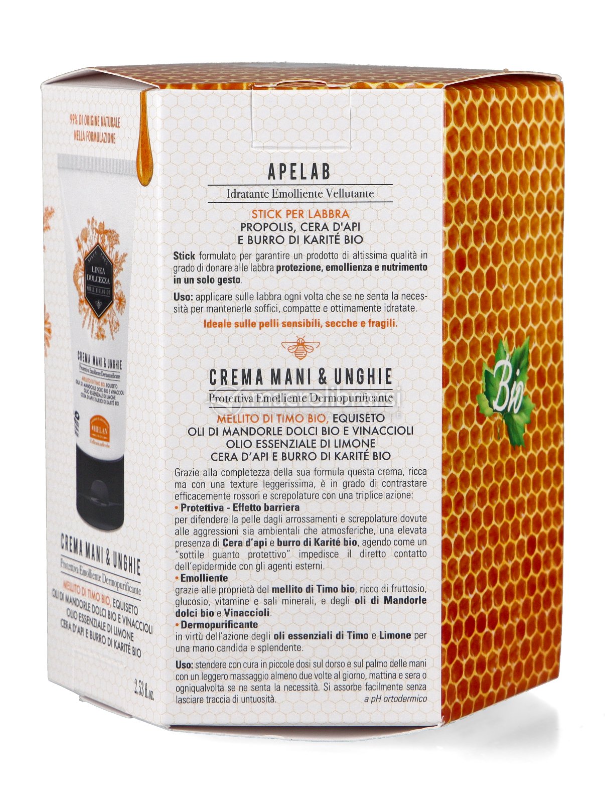 | Confezione | Crema mani e unghie 75 ml + Stick labbra 4,5 ml |
