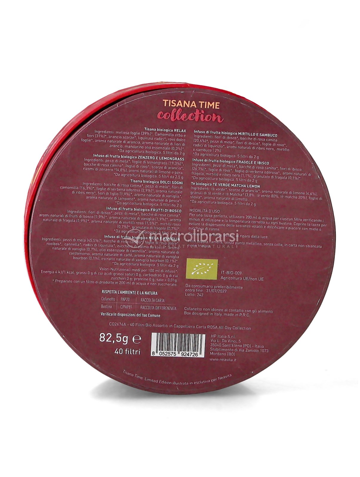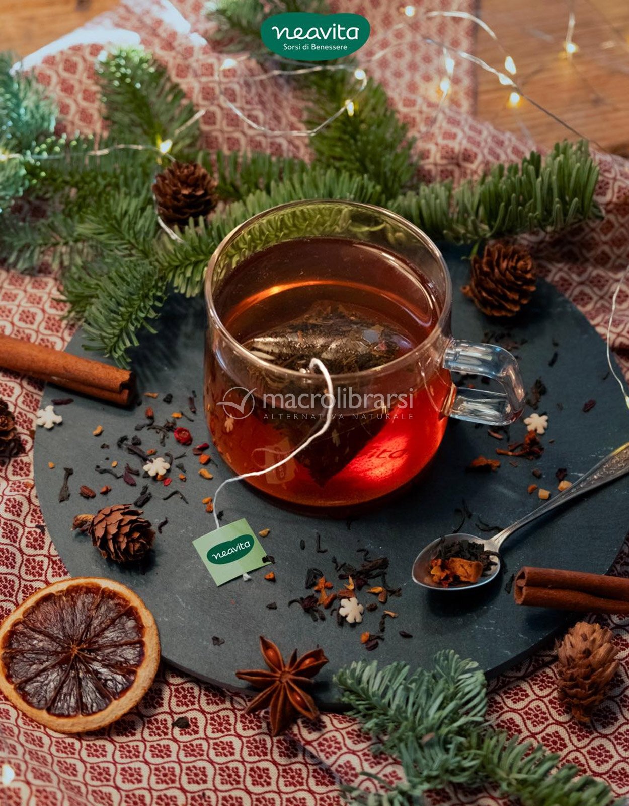 Un cofanetto decorato con tante tisane e infusi a base di frutta ed erbe biologiche. Una confezione Natalizia in cartone senza plastica con 40 tisane Neavita!