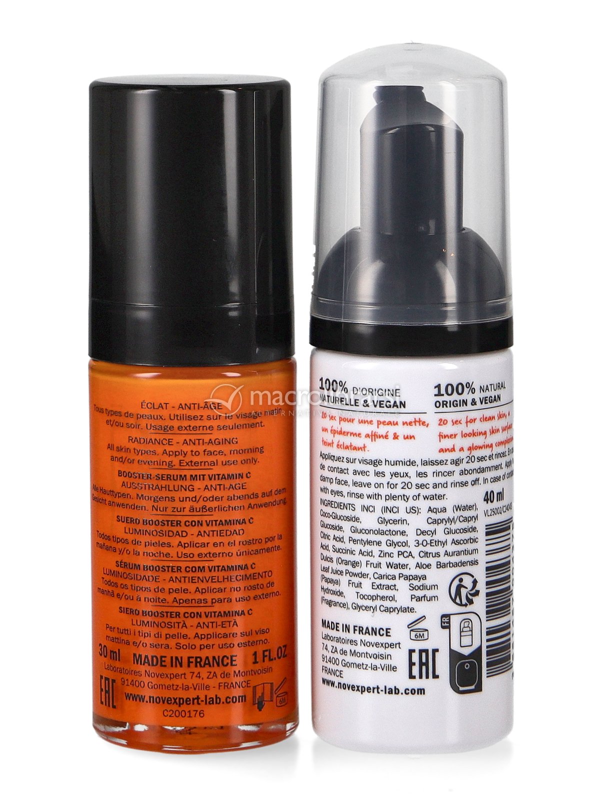 | Confezione | Serum booster Vitamina C (30 ml) + Mousse detergente Flash Eclat (40 ml) |