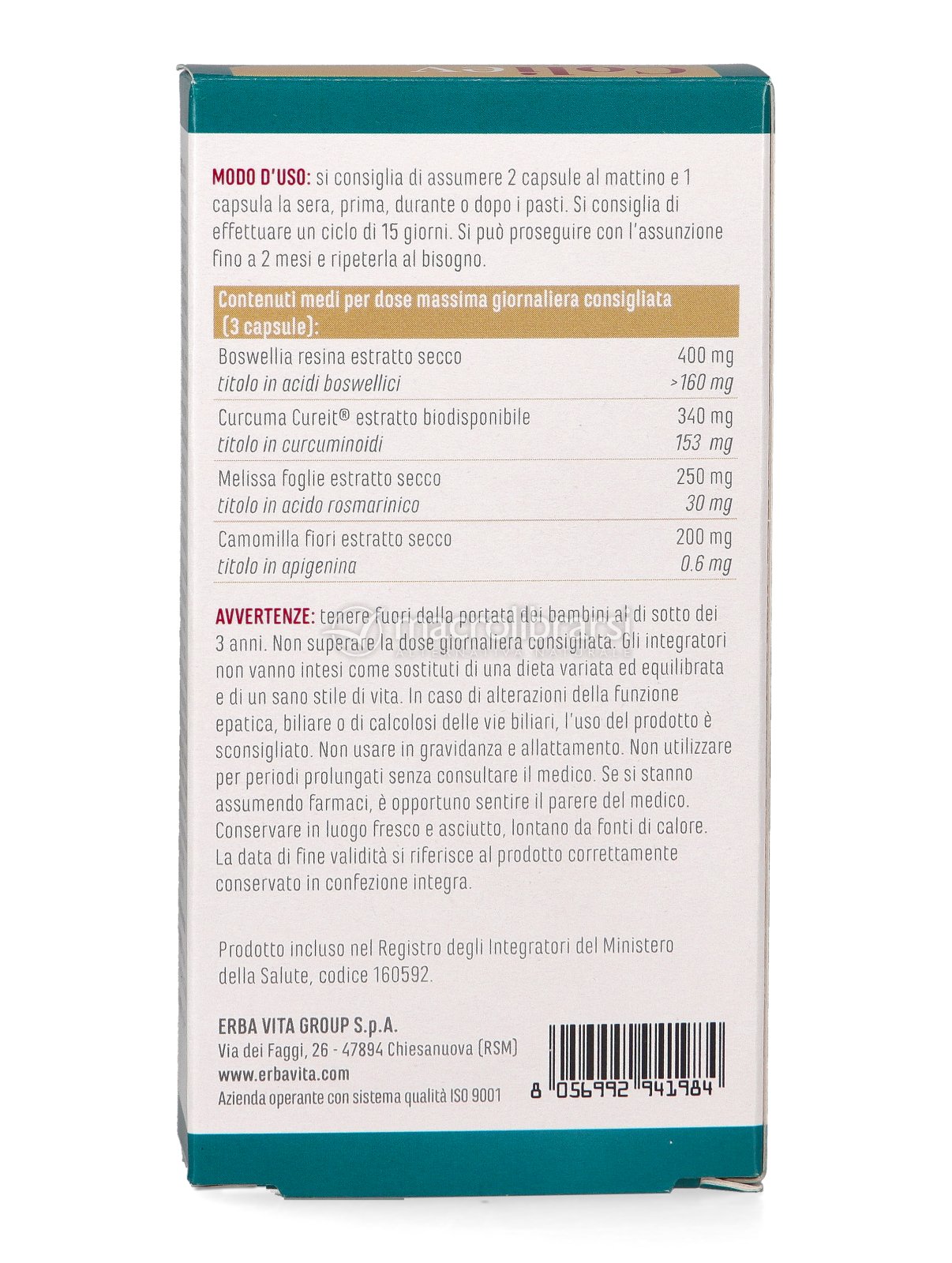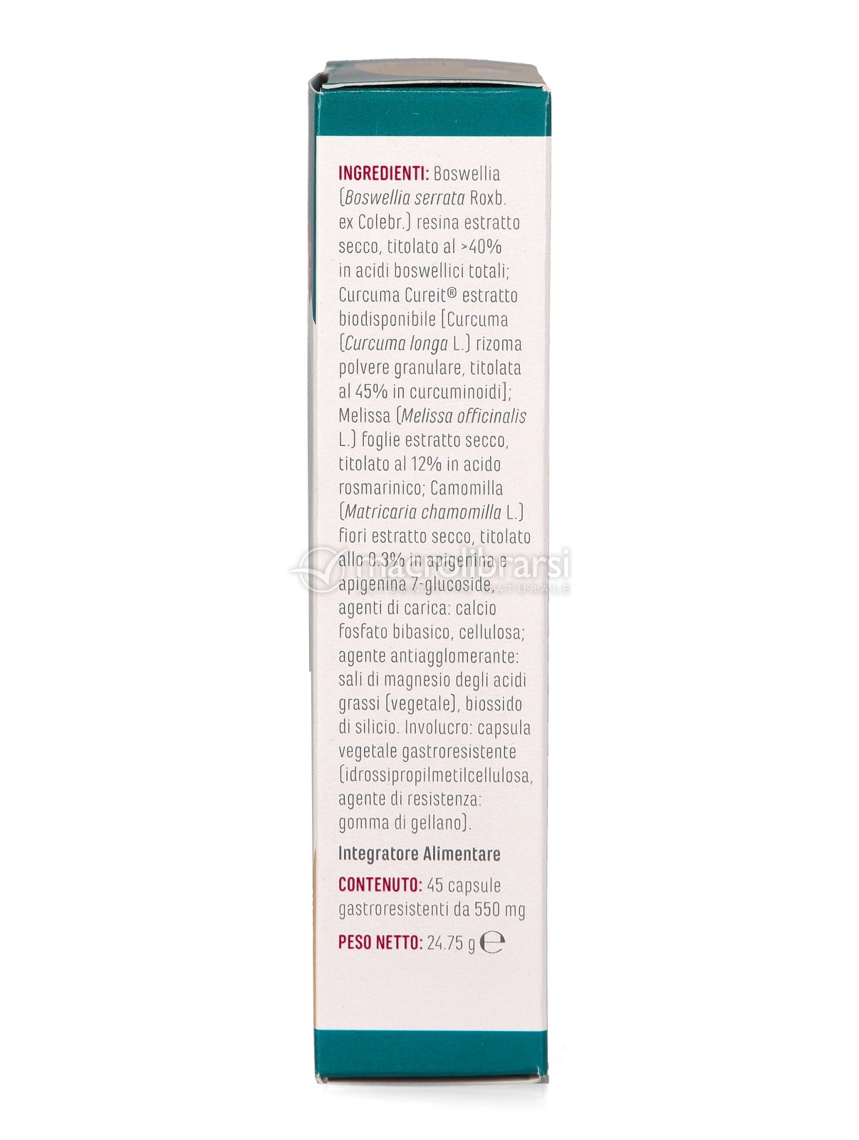 | Boswellia resina estratto secco | 400 mg |
