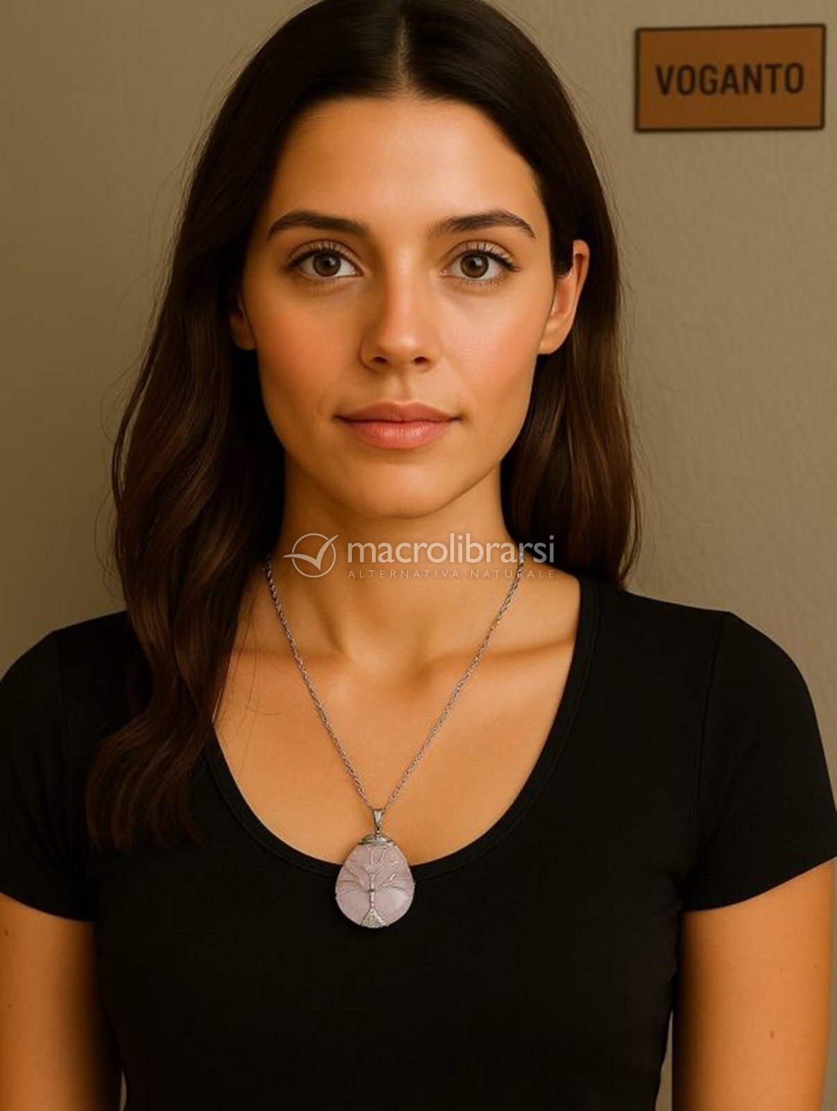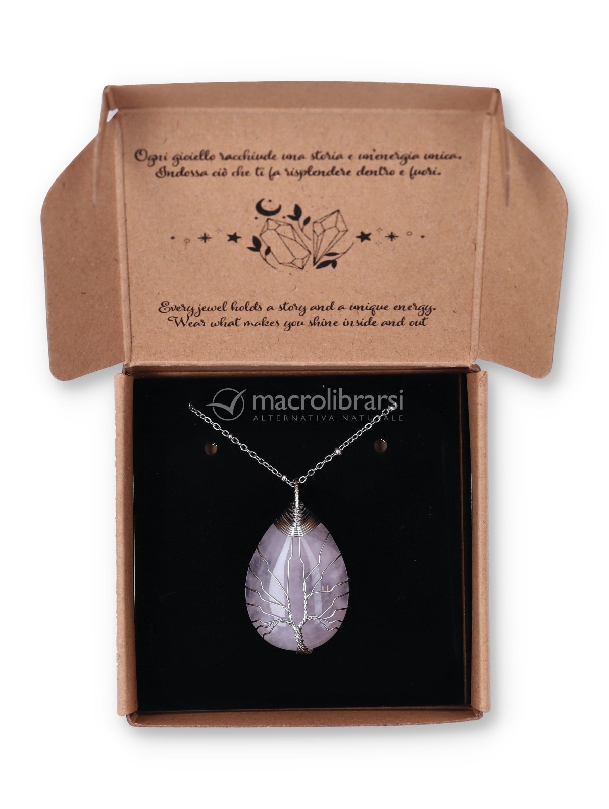 La Collana con ciondolo Albero della Vita in quarzo rosa naturale, nella caratteristica forma a goccia è un gioiello che racchiude significati profondi.