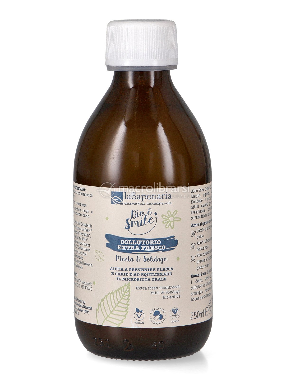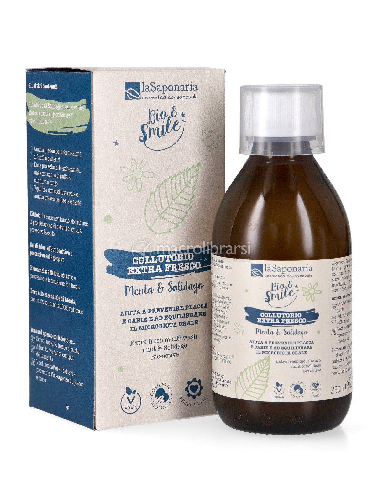 Contiene puro Olio essenziale di Menta biologica per una potente azione rinfrescante e l’innovativo bio-attivo naturale di Solidago per prendersi cura del benessere della tua bocca riequilibrando il naturale microbiota orale.