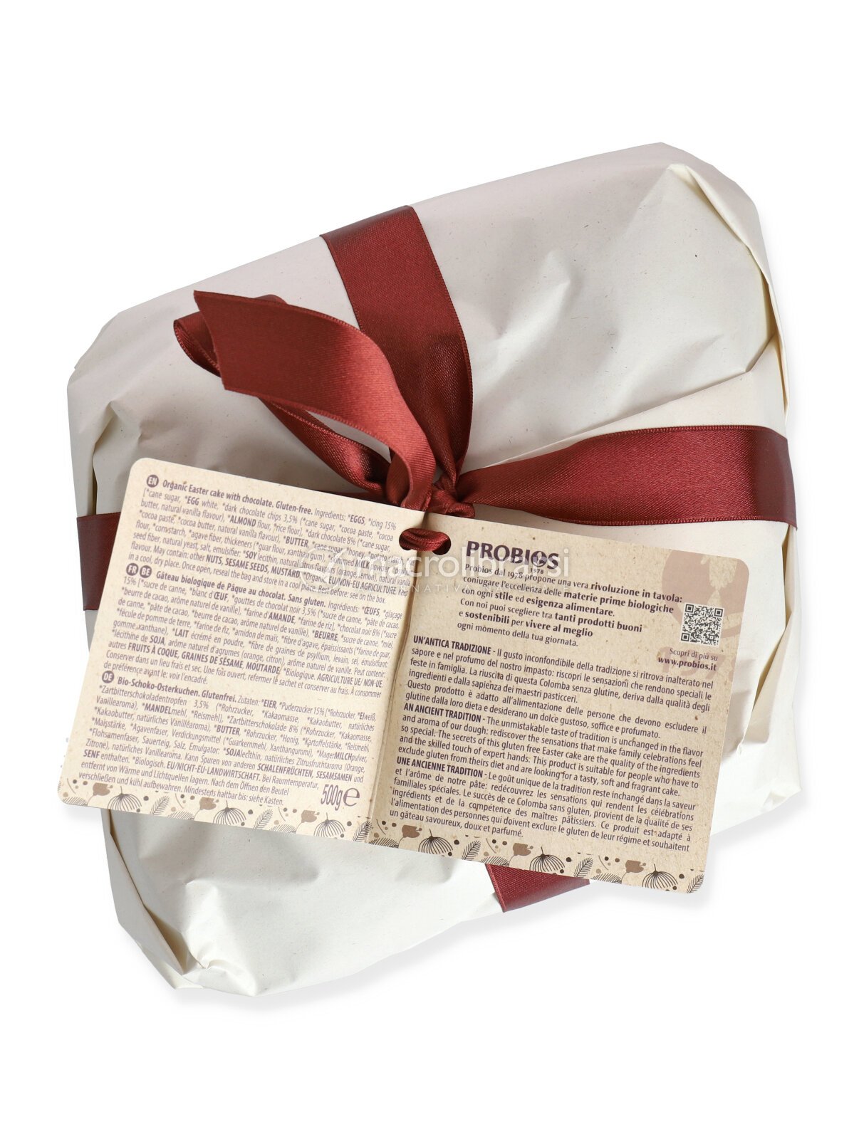 La presenza di cioccolato fondente rende questa colomba particolarmente golosa. L'assenza di glutine la rende adatta a persone con intolleranze o celiachia.