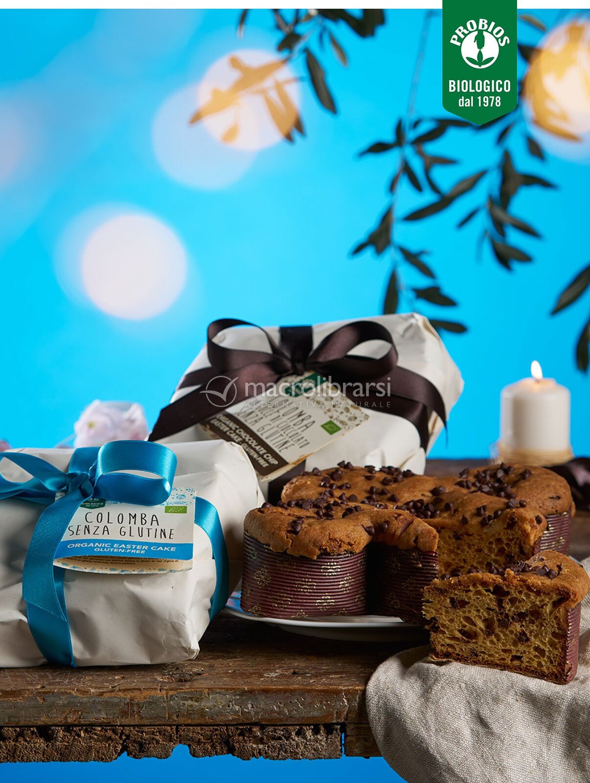Colomba pasquale con Gocce di cioccolato fondente Probios con glassa.