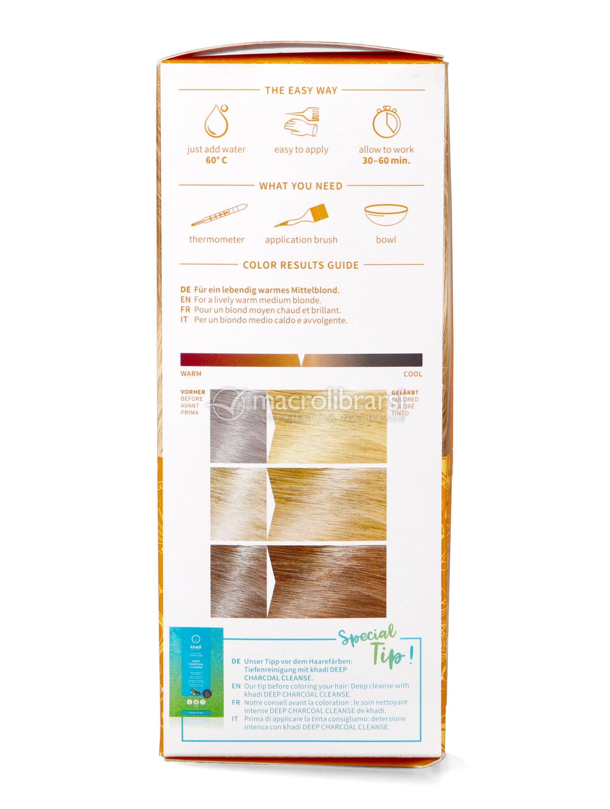 La Tinta Naturale per Capelli Biondo Medio Khadi ti dona una nuance bionda e lucente.