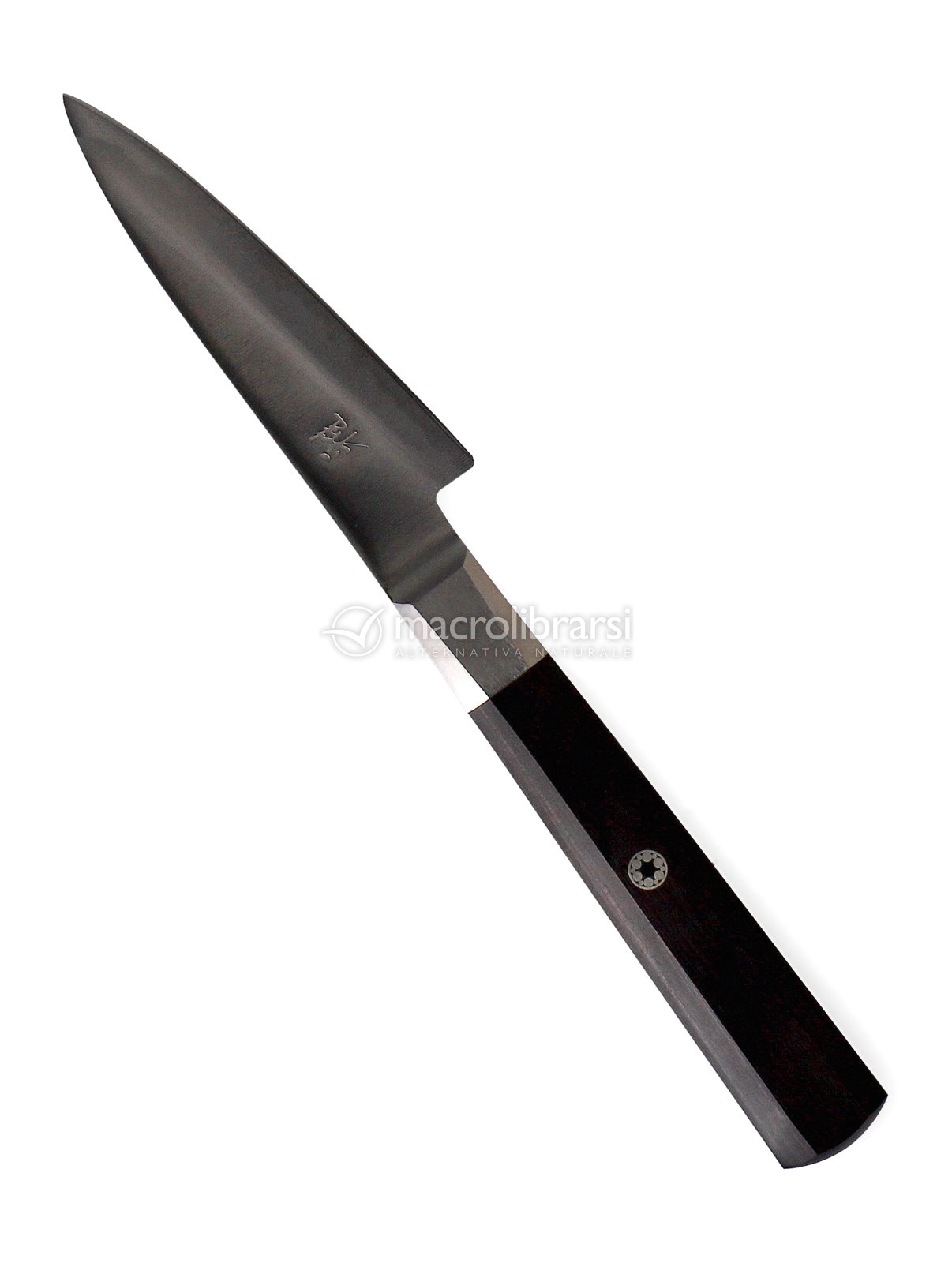 Il taglio del bordo richiama quello delle spade giapponesi, simbolo di precisione e maestria artigiana. Ogni movimento di taglio è scorrevole, pulito, controllato. Il manico, elegante e armonioso, è realizzato in legno di pakka impregnato, stabile e durevole nel tempo.