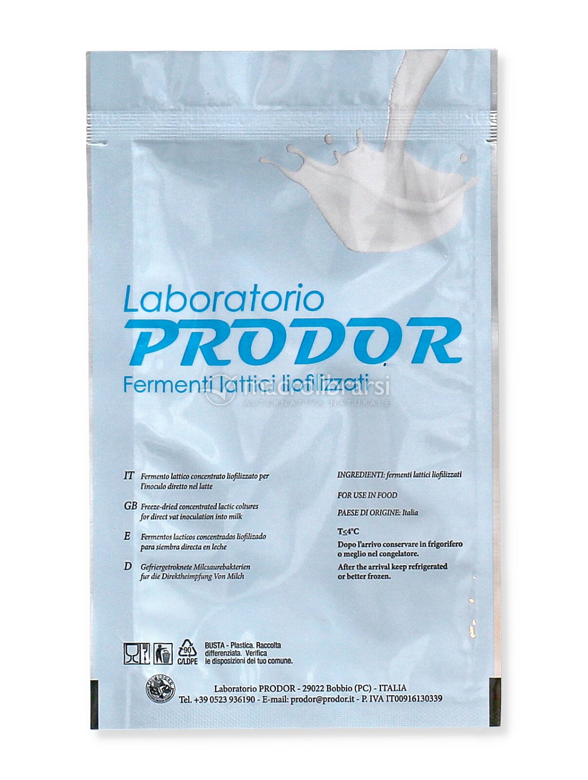 Il procedimento di liofilizzazione ed il confezionamento in atmosfera sterile garantiscono l’inalterabilità del fermento sino alla data di scadenza purché sia conservato in frigorifero (+4° C. Circa)