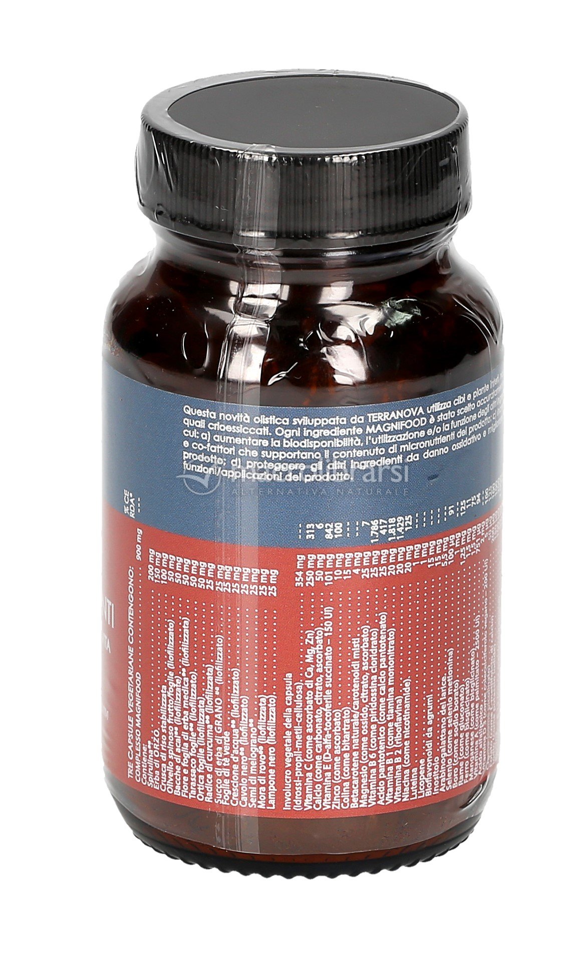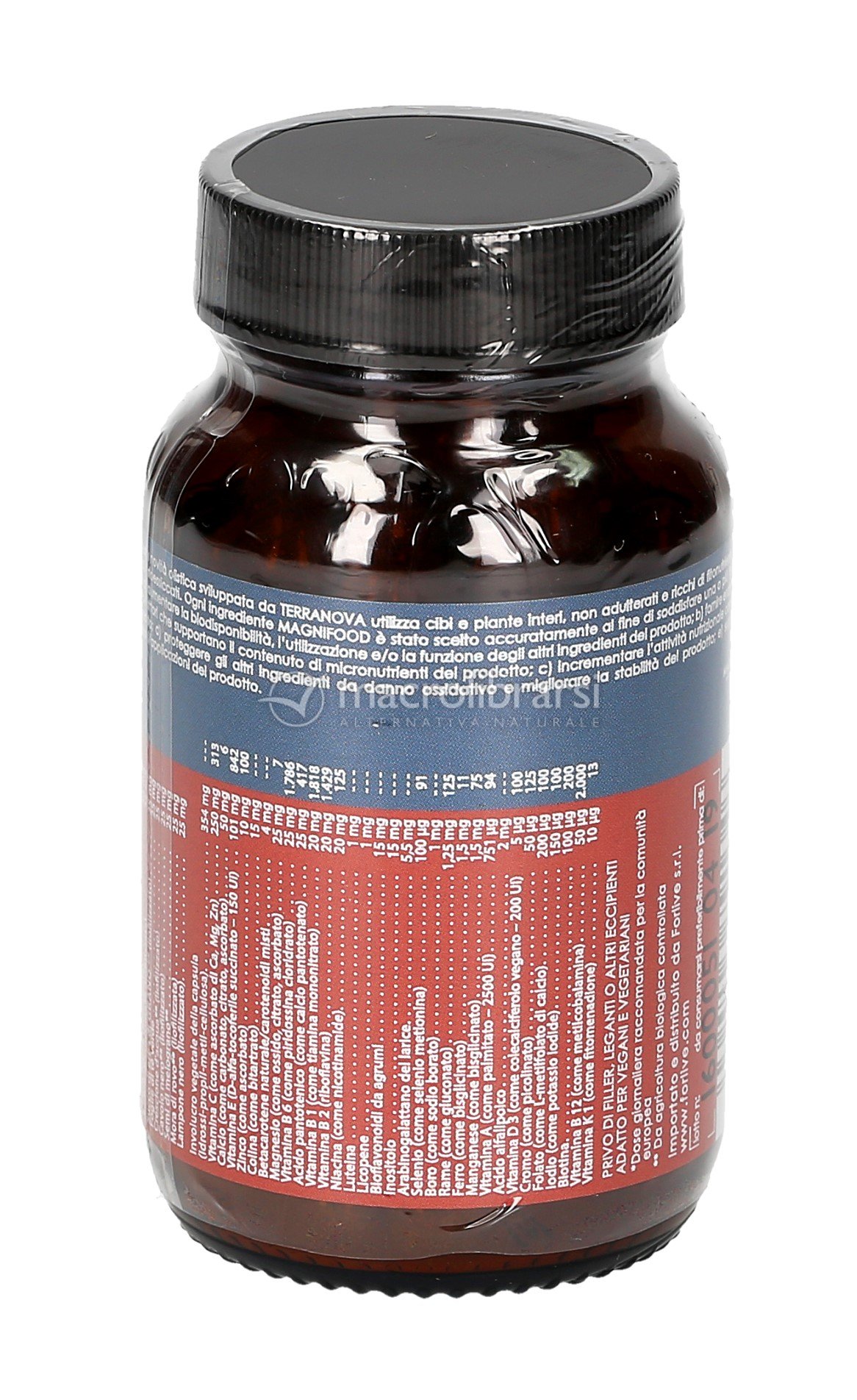 Contiene, inoltre, il Complesso Magnifood, realizzato da piante integre di provenienza biologica e selvatica, essiccate con il processo di crioessicamento (liofilizzazione). Si tratta di un'innovazione prestigiosa di Terranova, che viene aggiunto al posto di eccipienti nocivi.