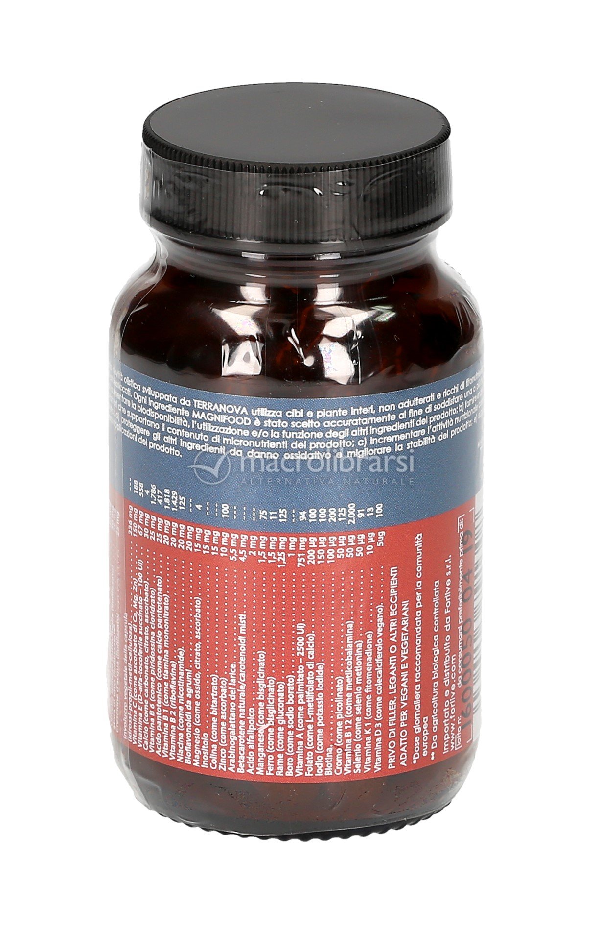 Il Multivitaminico è arricchito dal Complesso Magnifood, un pool di estratti vegetali ottenuto da piante integre di provenienza biologica e selvatica, essiccate con il processo di crioessicamento (liofilizzazione). Si tratta di un'innovazione prestigiosa di Terranova, che viene aggiunto al posto di eccipienti nocivi.