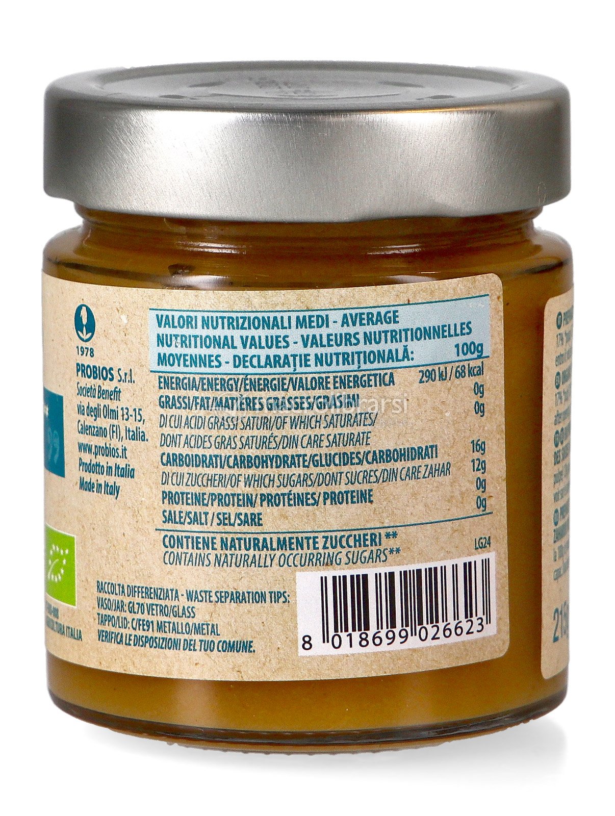 La composta di mela della Probios è un prodotto ottimo se vuoi qualcosa che sia mela e non abbia nient'altro dentro. È come fosse della mela cotta leggermente liquida e non solida, per cui non è una marmellata di gel. Più naturale di così non saprei!
