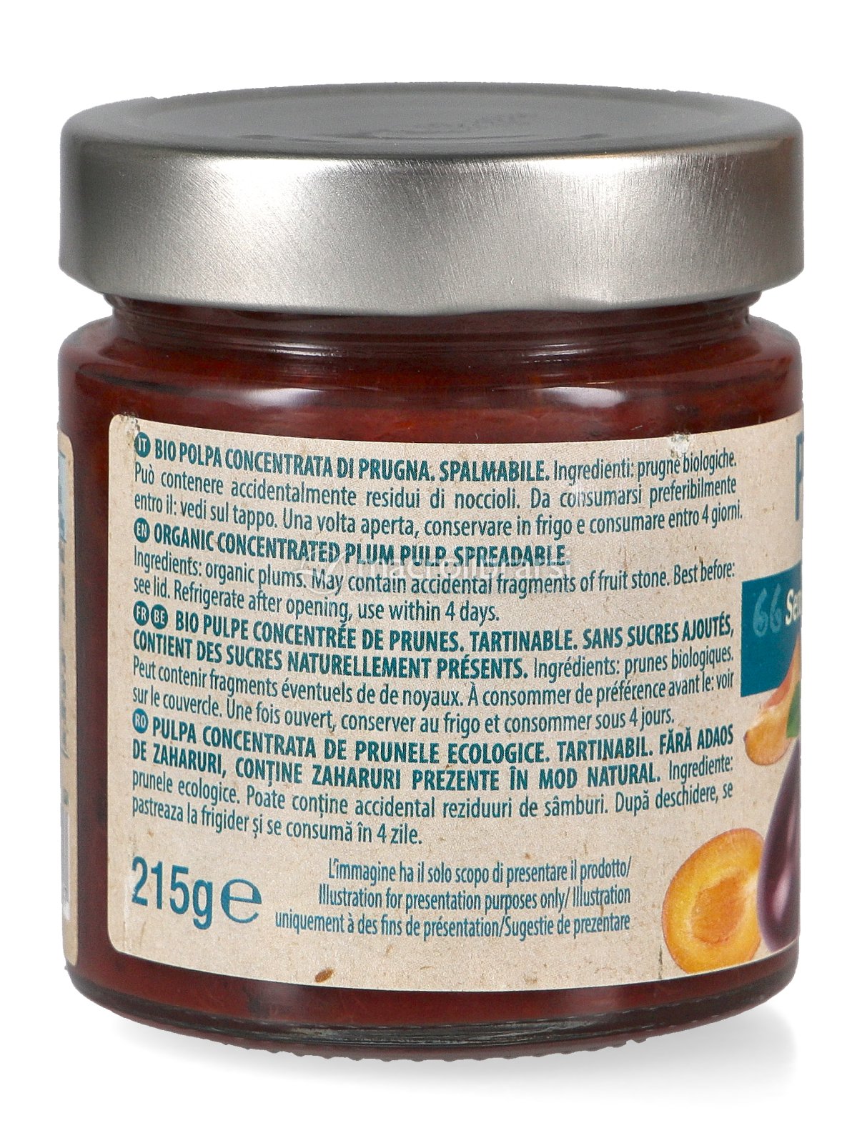 solo prugna 100%, non ha pectina, né zuccheri o edulcoranti ha il sapore asprigno tipico delle prugne. si apprezza in purezza, o su gallette o nelle crostate