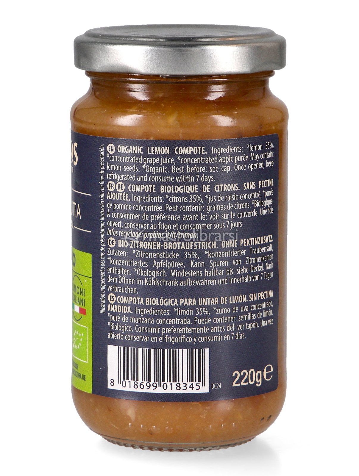 Composta di limone biologica ricca di succo d'uva e mela per dolcificarla. Non contiene pectina, il sapore è aspro ma non troppo. Mi fa piacere che abbiano tolto i semini perché nei lotti precedenti si trovavano spesso all'interno della composta. E' tra quelle che acquisto con più frequenza; è ottima spalmata sul pane integrale addizionata anche alla crema di cocco o alla nocciolata. Consigliata.