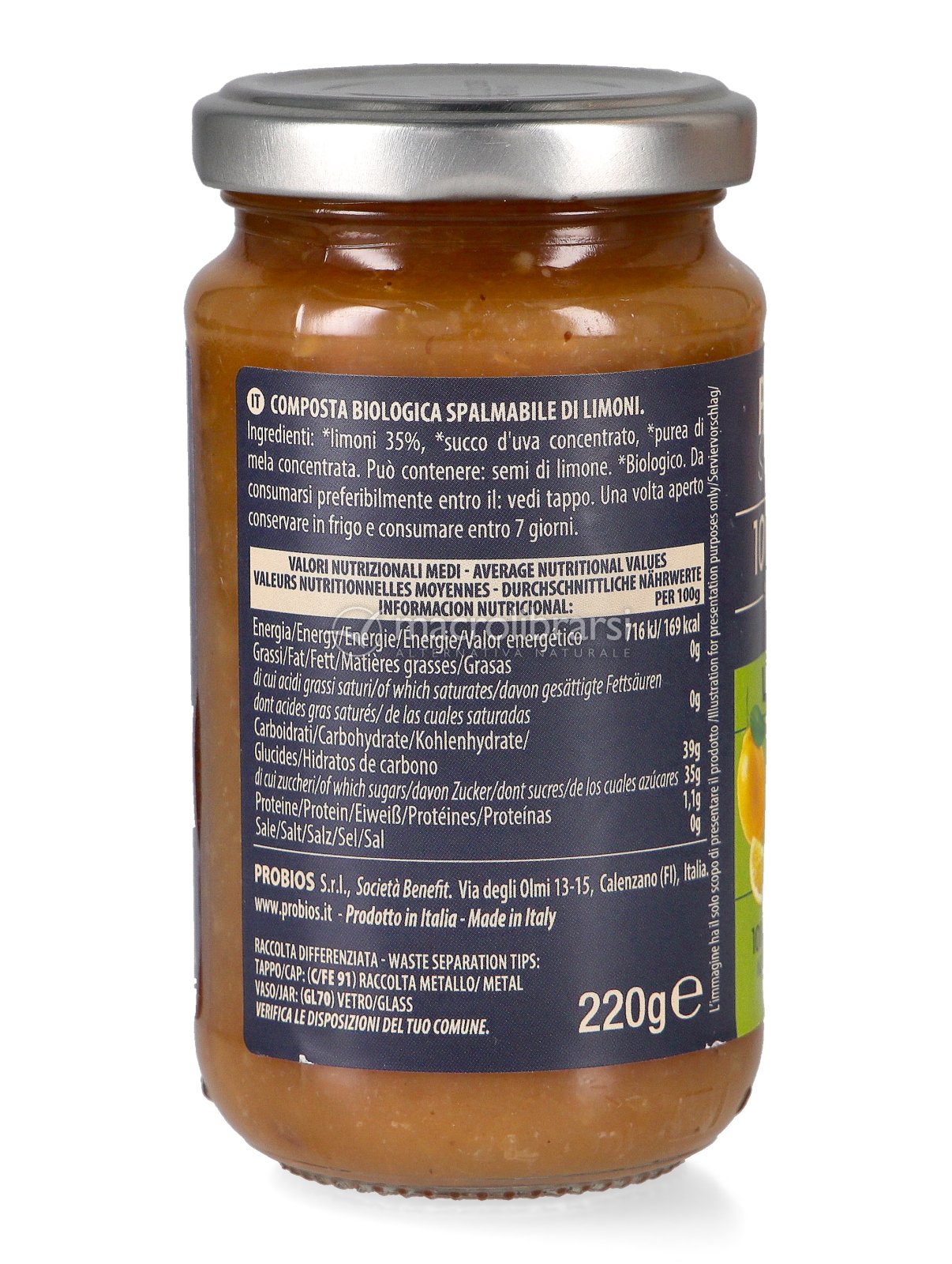 Ho voluto provare ad assaggiare questa nuova confettura di limoni "Probios"... Mi ha attirato il fatto che fosse senza pectina, cosa assai rara da trovare... L'ho trovata buona ma non buonissima, nel senso che il sapore acidule del limone è molto concentrato, e a me questo non piace molto... ma è solo una questione di gusto personale... Per il resto la ritengo un prodotto di altissima qualità... raro da trovare per le sue specifiche caratteristiche...