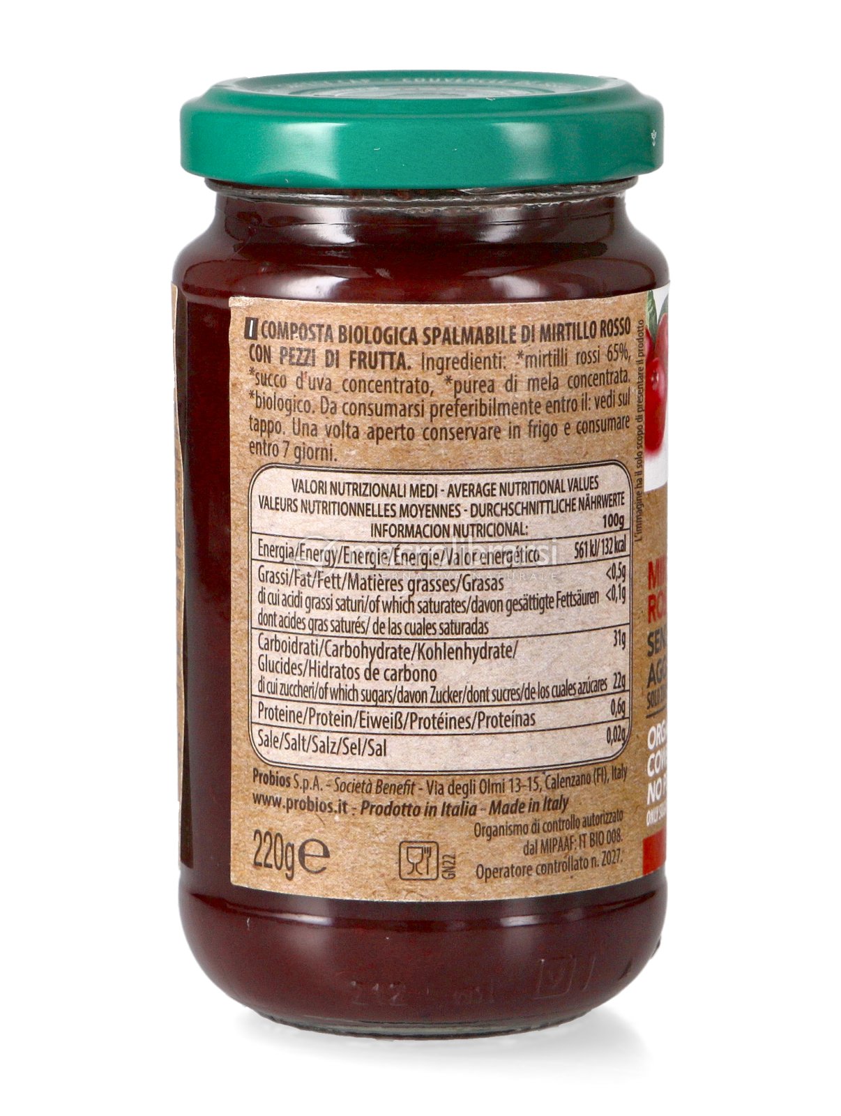 Molto gradevole questa composta biologica di Mirtilli rossi. Peccato che finisce subito! L'ho utilizzata sulla crostata, molto buona pur senza zucchero