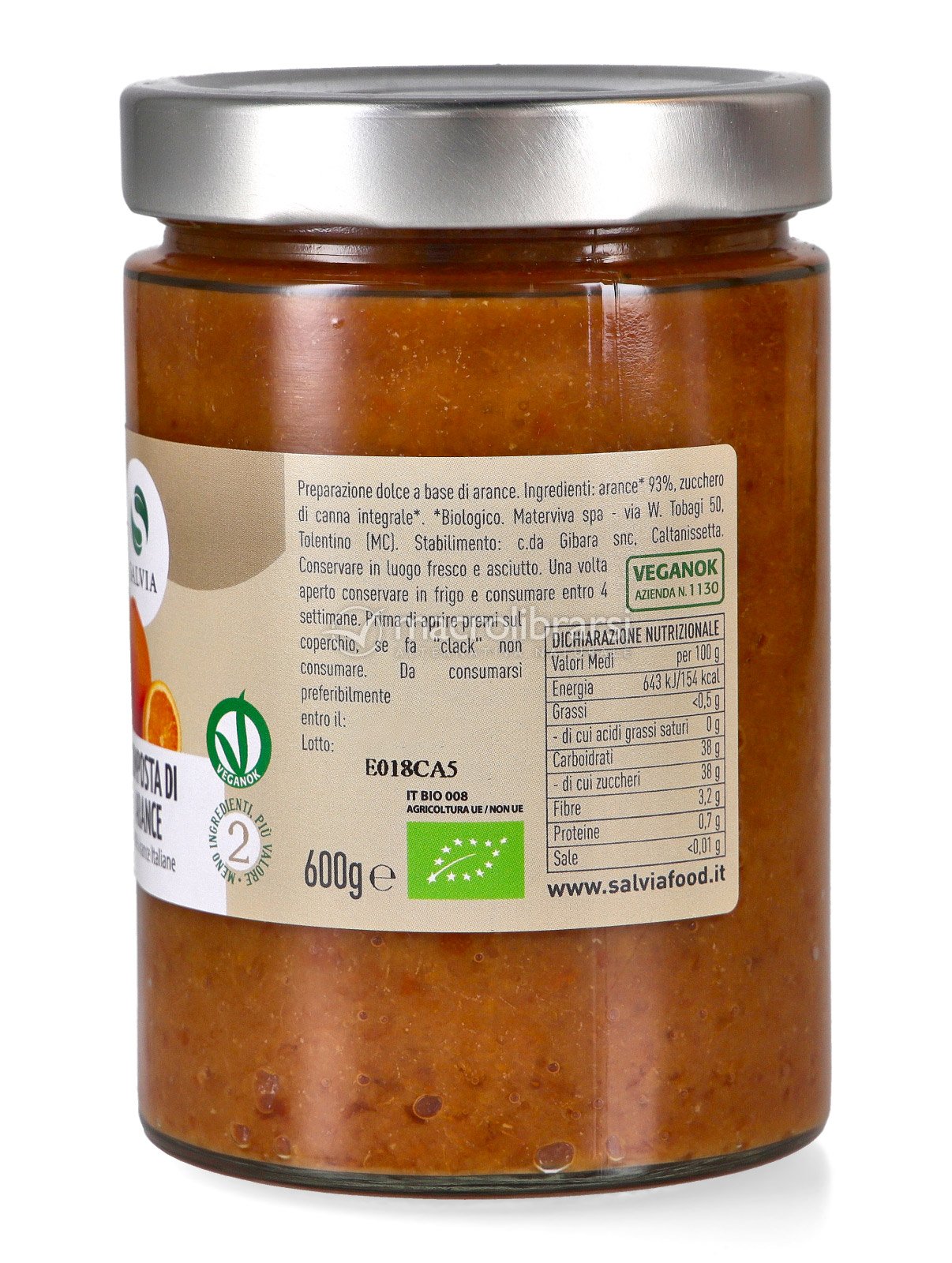Una composta di arance biologica, delicatissima, prodotta con alimenti selezionati biologici italiani. Una composta adatta per le prime colazioni, spalmata sulle fette biscottate o sul pane bianco o di altri tipi. E' proposta dalla ditta Salvia-Materviva, azienda leader di prodotti naturali e con l'etichetta trasparente pianesiana, che garantisce una chiarezza unica ai prodotti di questa ditta.