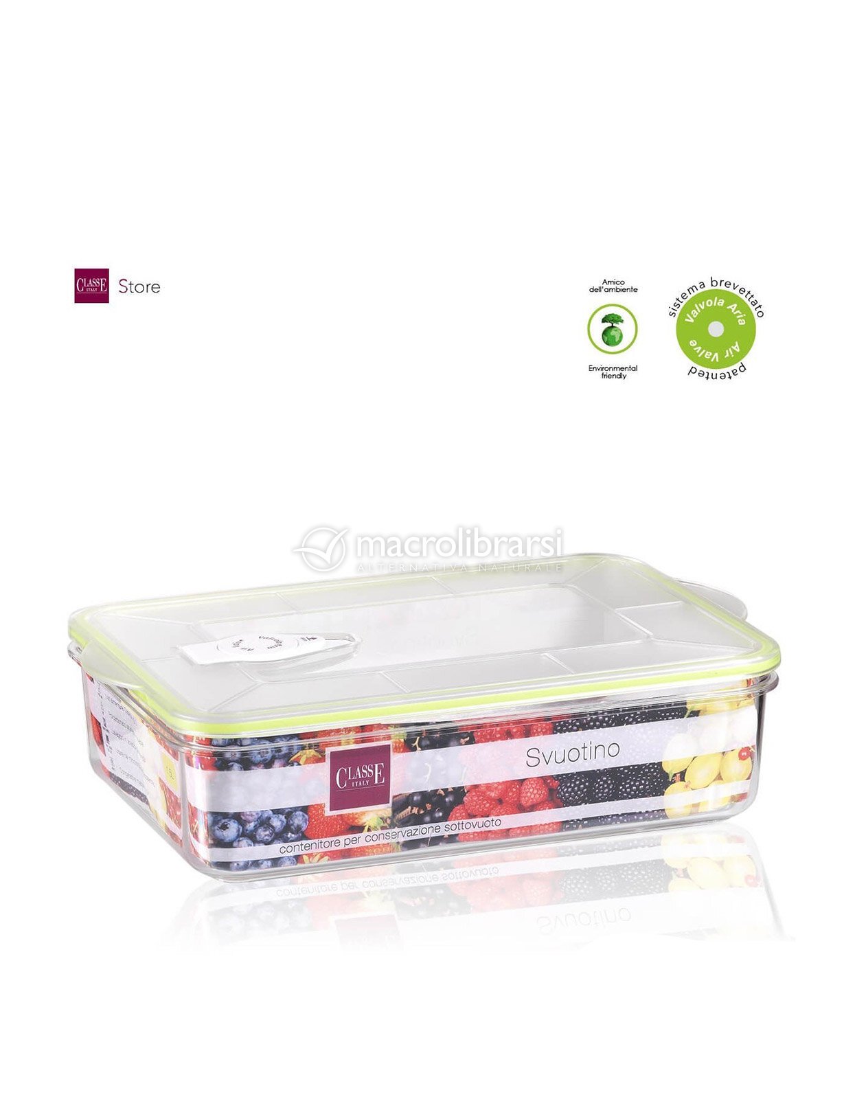 I contenitori Svuotino di Classe Italy hanno una valvola brevettata per il sottovuoto (per l'estrazione dell'aria) che può essere utilizzata con l'apposito Svuotino manuale per Sottovuoto (acquistabile separatamente).