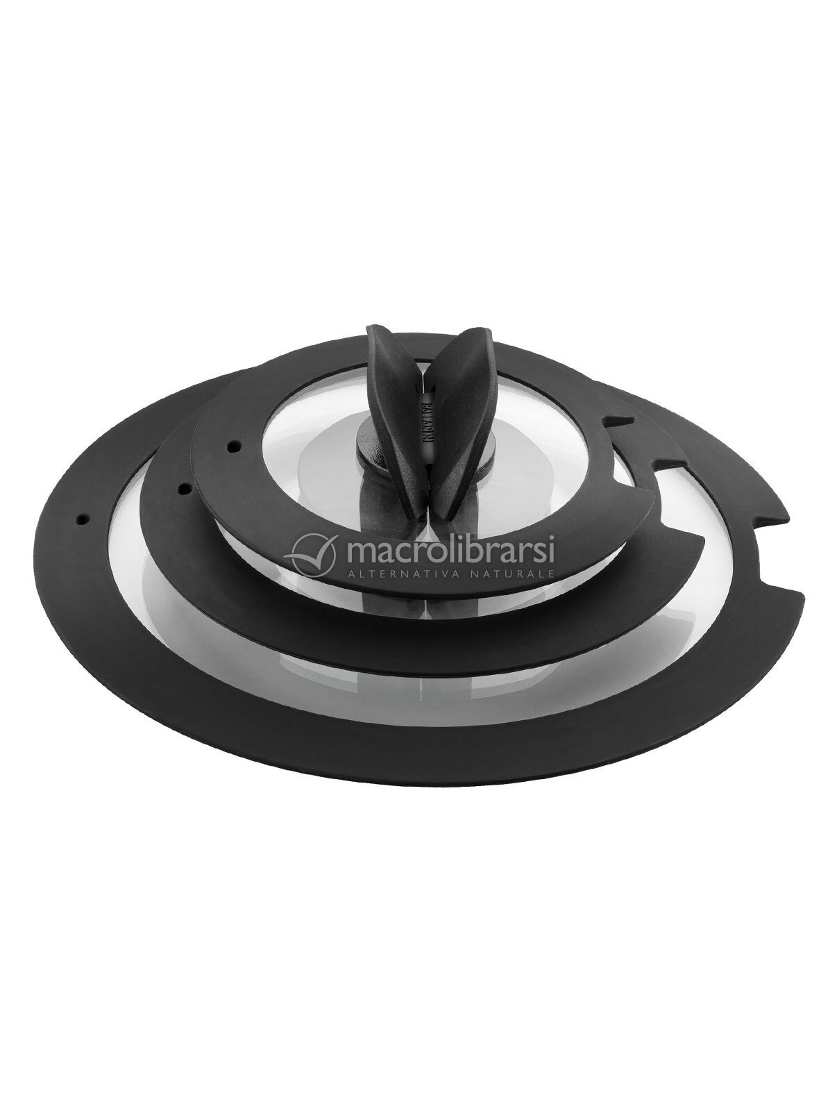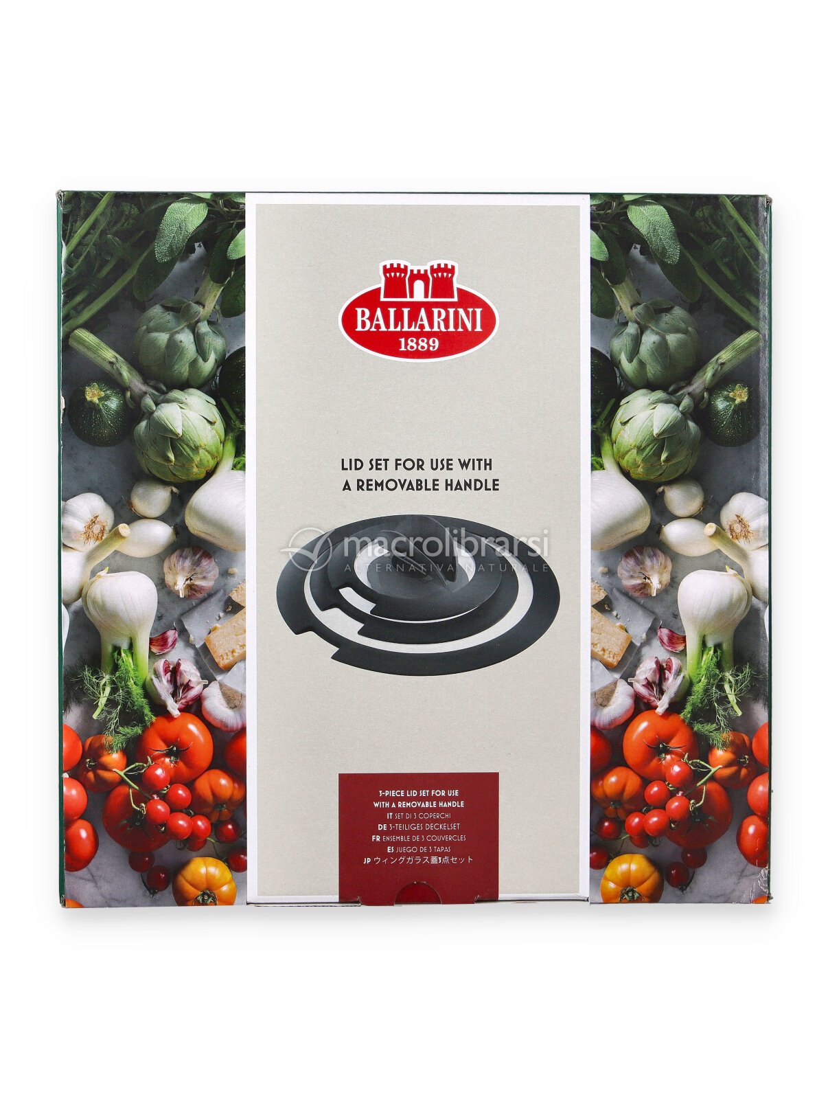 Il set di coperchi BALLARINI Torre è pensato per adattarsi perfettamente a padelle e casseruole Torre da 16, 20 e 28 cm, offrendo massima praticità e ingombro ridotto.
