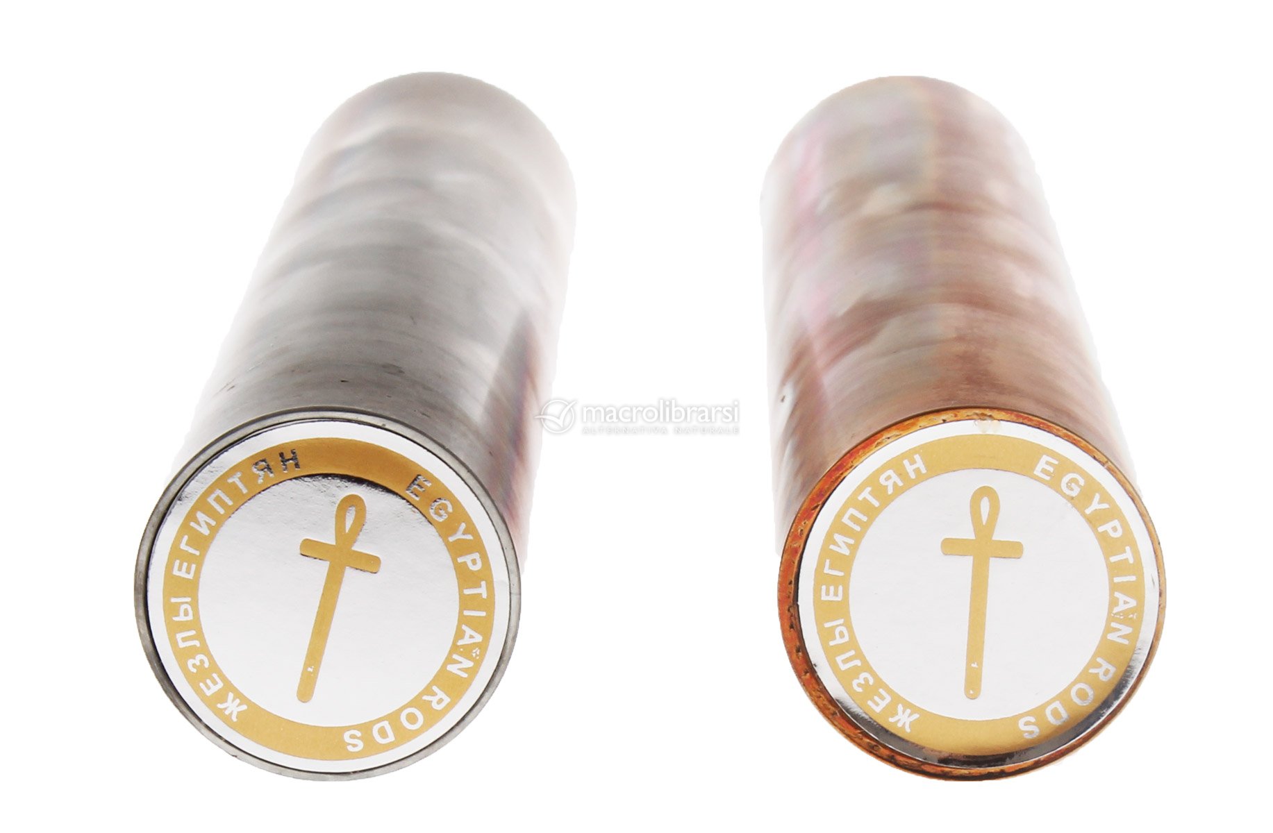 Questi cilindri sono lunghi 14,5 cm e hanno punzonato sulla base di ognuno due volte il numero 3 (33); sul cilindro di rame c'è l'ologramma della dea Hathor mentre su quello di zinco quello del dio Horus. Una nota distintiva, come si vedrà di seguito, è che sulla superficie di presa di entrambi i cilindri c'è un adesivo che rappresenta l'Ank egiziano (nella foto a destra).