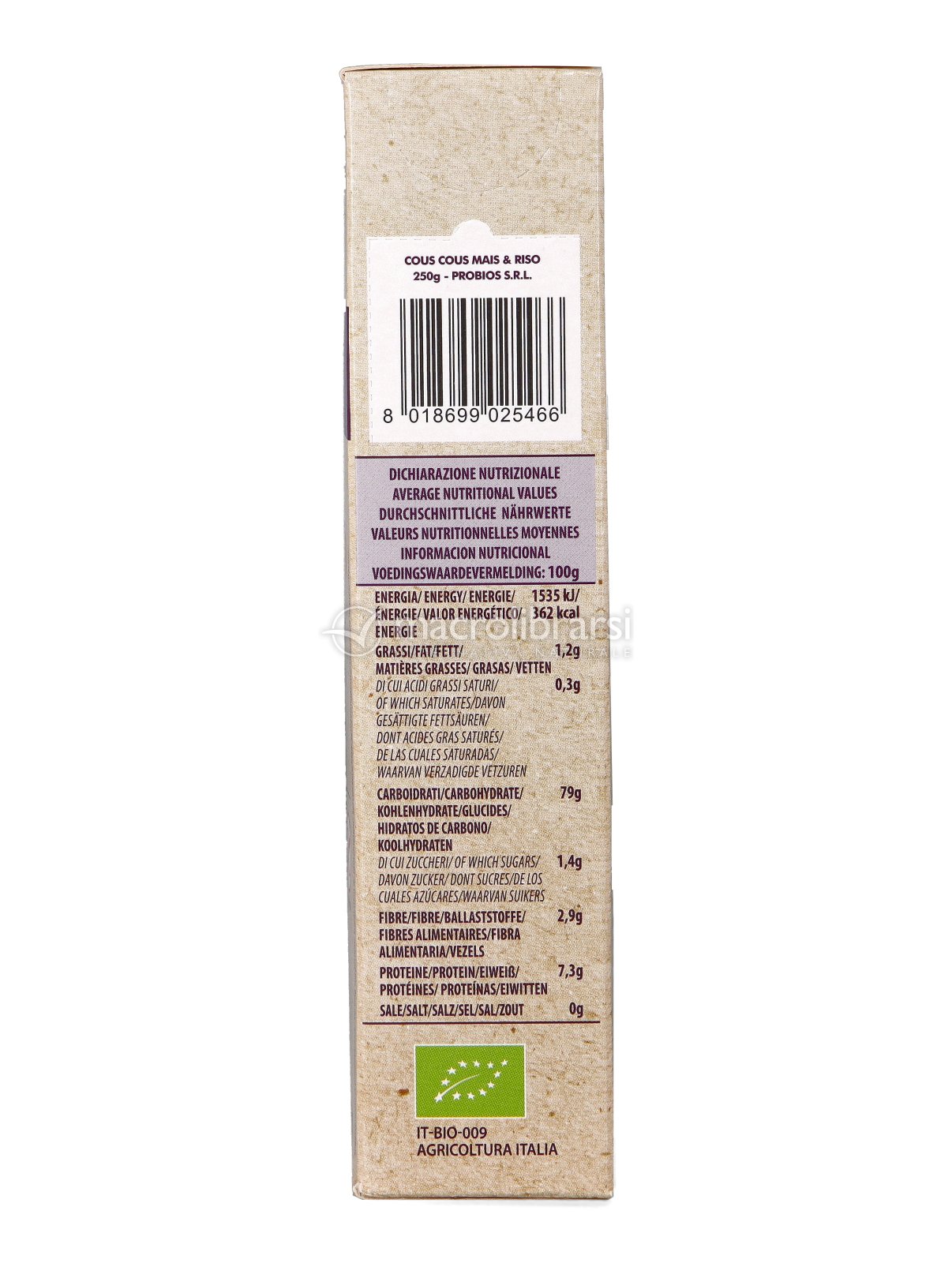 Cous Cous di Mais e riso italiano cotto a vapore, pronto in 5 minuti. Basta aggiungere acqua e il piatto è pronto!