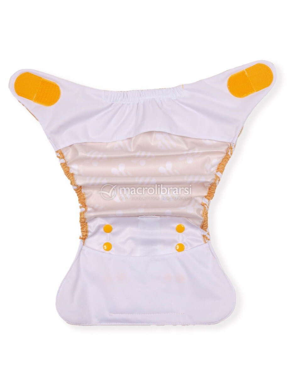 All'interno va aggiunto un inserto assorbente oppure un pannolino di stoffa del tipo "fitted".