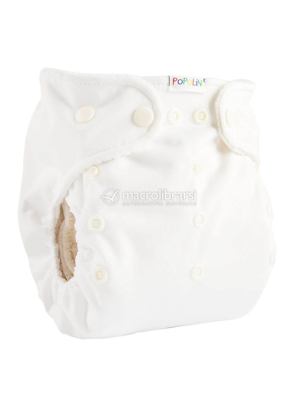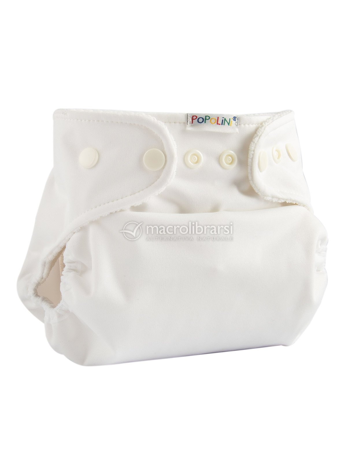 Questa cover bianca fa parte dell'assortimento di Popolini, azienda austriaca che da 30 anni produce pannolini lavabili e abbigliamento ecologico.