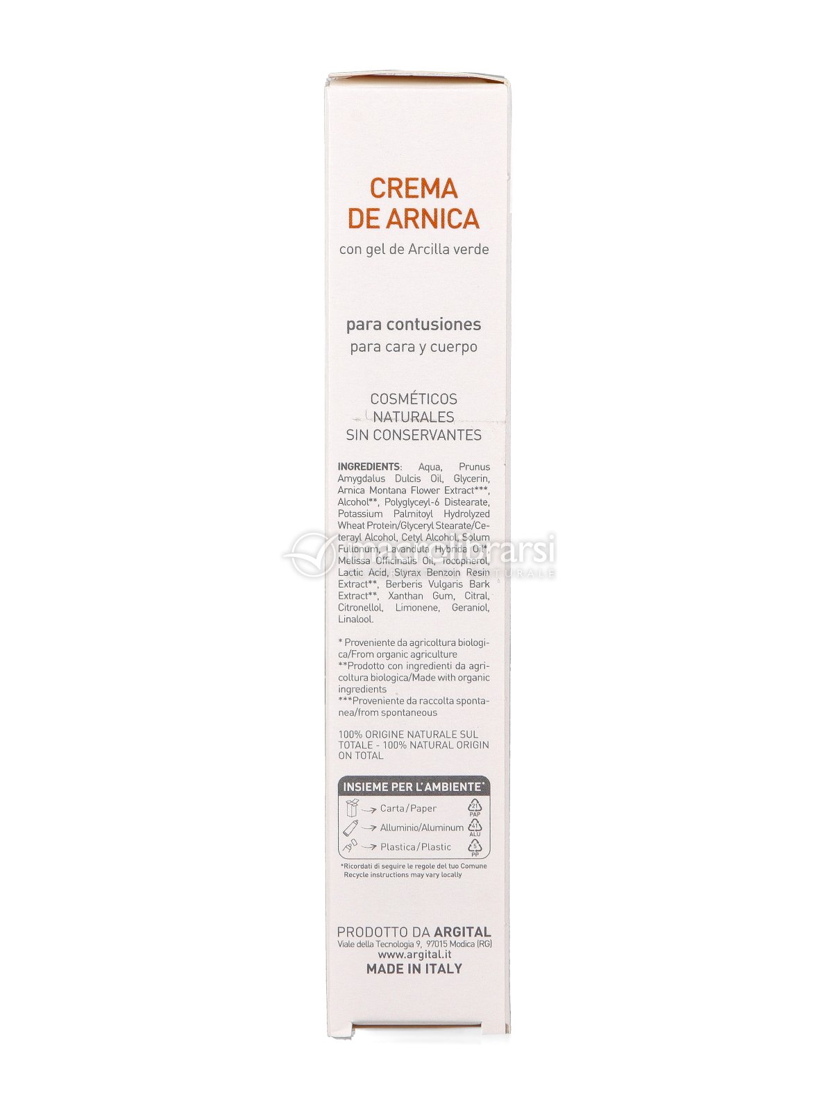Io amo particolarmente questo brand perché i prodotti che ho provato mi hanno dato visibile beneficio. Ho comprato questa crema per le qualità dell'arnica come "calmante" post trauma. L'ho applicato sopra una cicatrice dolorante e mi ha dato sollievo. Grazie Argital! Prodotto consigliato.