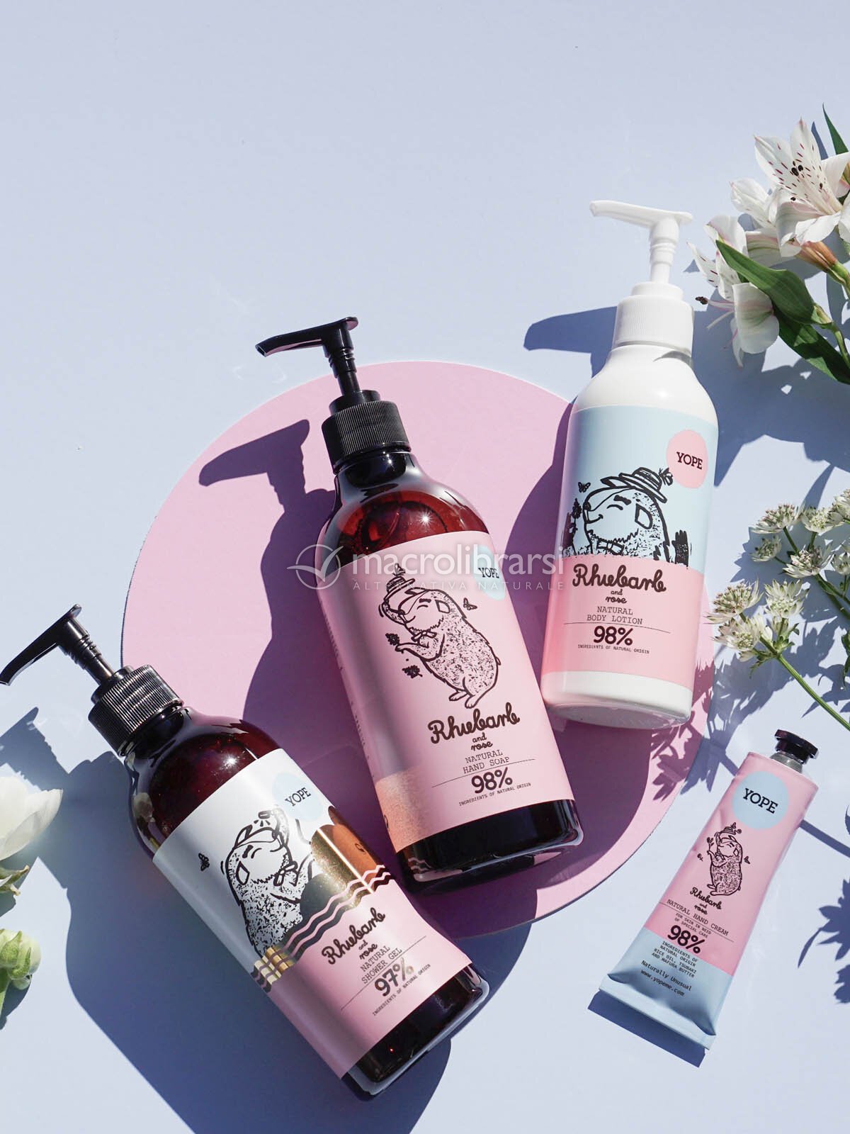 Se ami questa fragranza fruttata, assicurati di provare la lozione corpo naturale e il gel doccia della dolce linea YOPE Rabarbaro e Rosa!