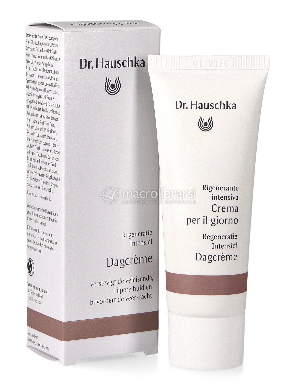 La Crema per il giorno della linea Rigenerante Intensiva Dr.Hauschka migliora la compattezza della pelle la cui tonicità si è affievolita, lasciandola levigata e rassodata.