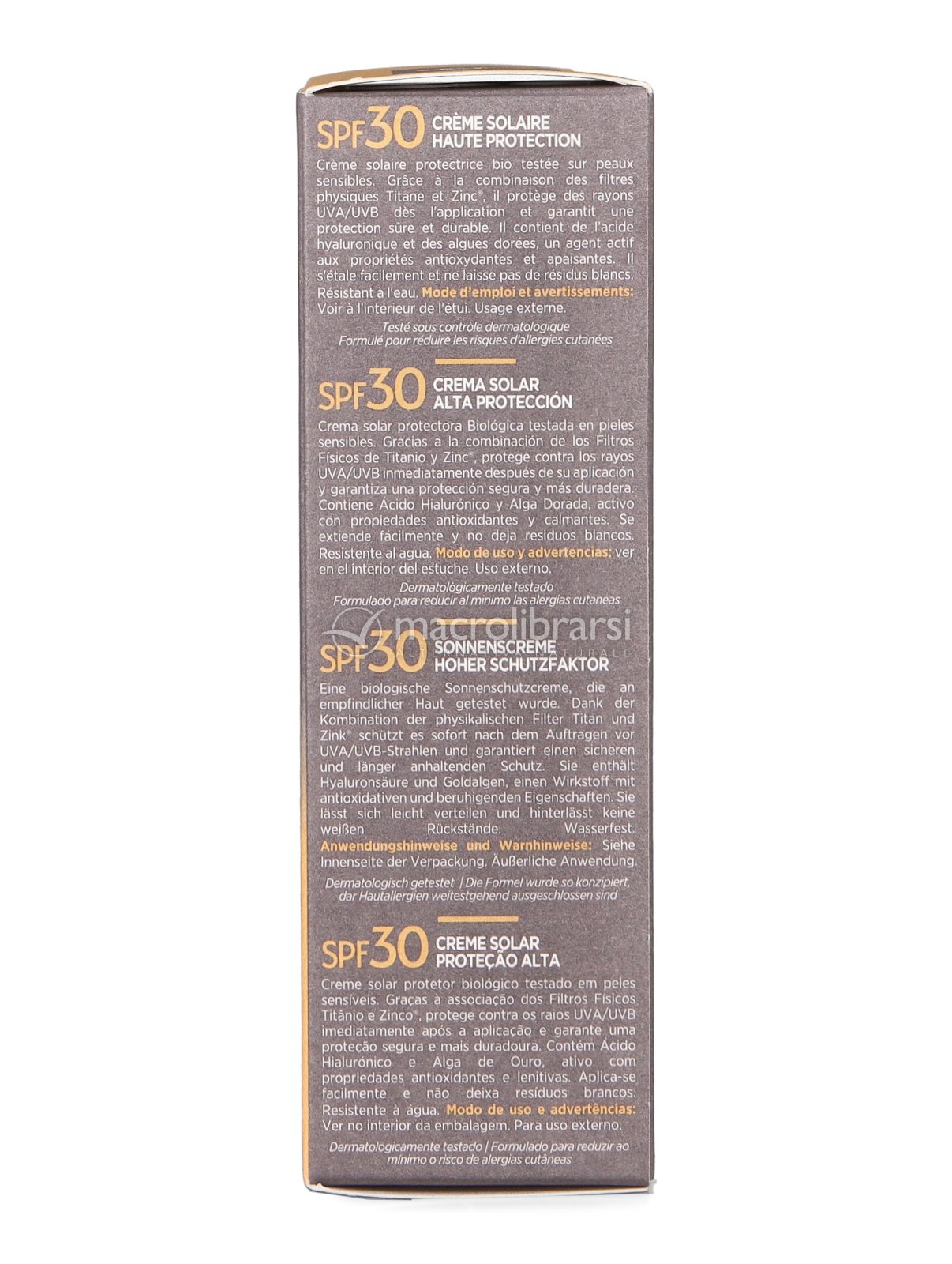 La formula della Crema Solare Alta Protezione è arricchita con acido ialuronico e alga d'oro, attivo dalle proprietà antiossidanti e lenitive.