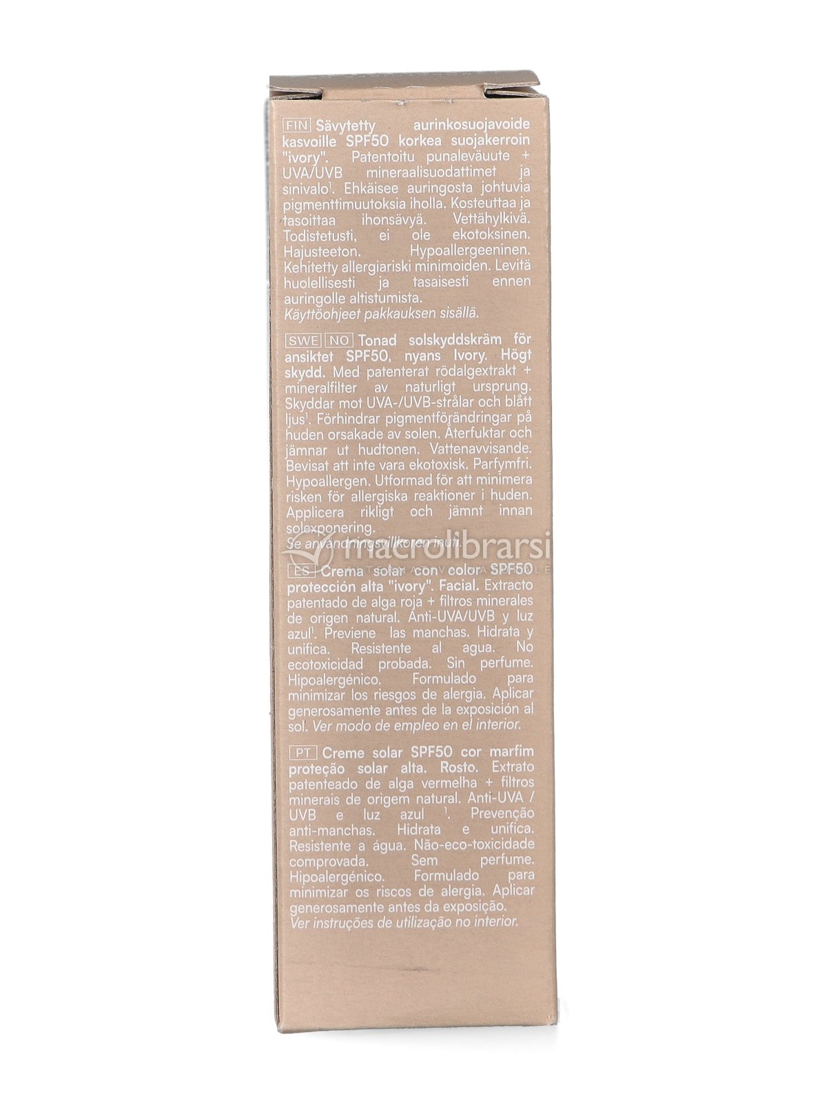 Crema viso colorata dalla tonalità avorio con filtri minerali SPF 50 che dona un effetto bagliore proteggendo efficacemente dagli effetti nocivi del sole.