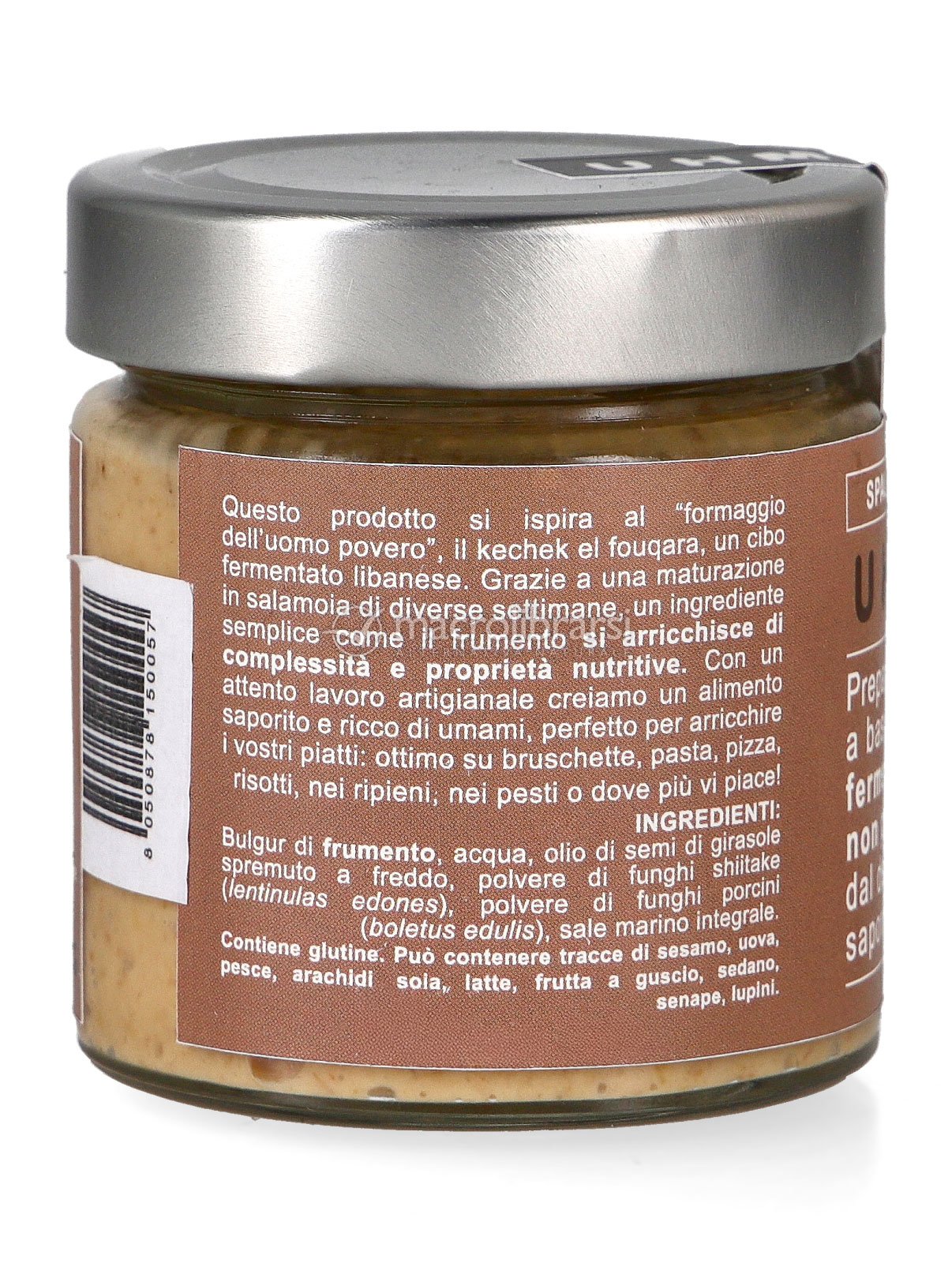 Uhmami Spalmabile ai Funghi è una reinterpretazione del Kechek el Fouquara libanese, proposta in versione spalmabile dal delicato sapore umami. La ricetta utilizza funghi porcini e shiitake, che conferiscono un profumo intenso di bosco e un gusto avvolgente.