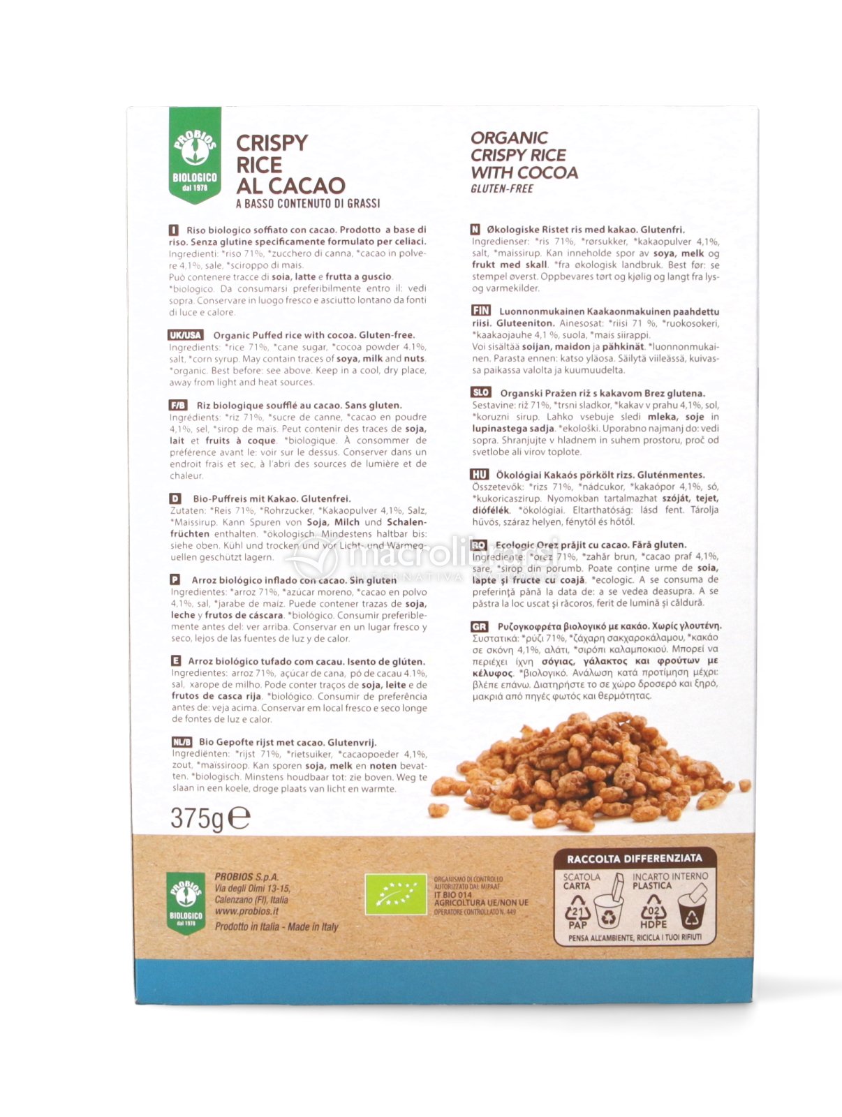 Croccante riso soffiato al cacao, senza glutine e a basso contenuto di grassi.