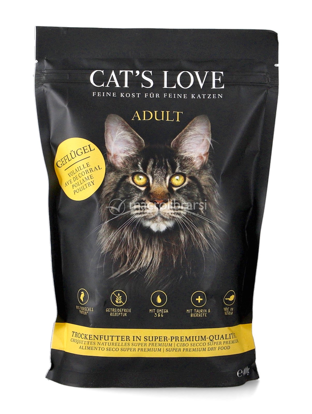 Le crocchette con pollame Cat's Love sono un alimento completo senza cereali ed ipoallergenico per gatti adulti.