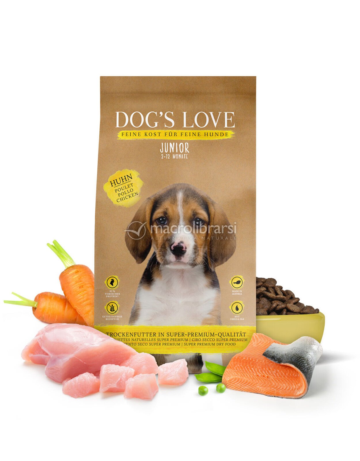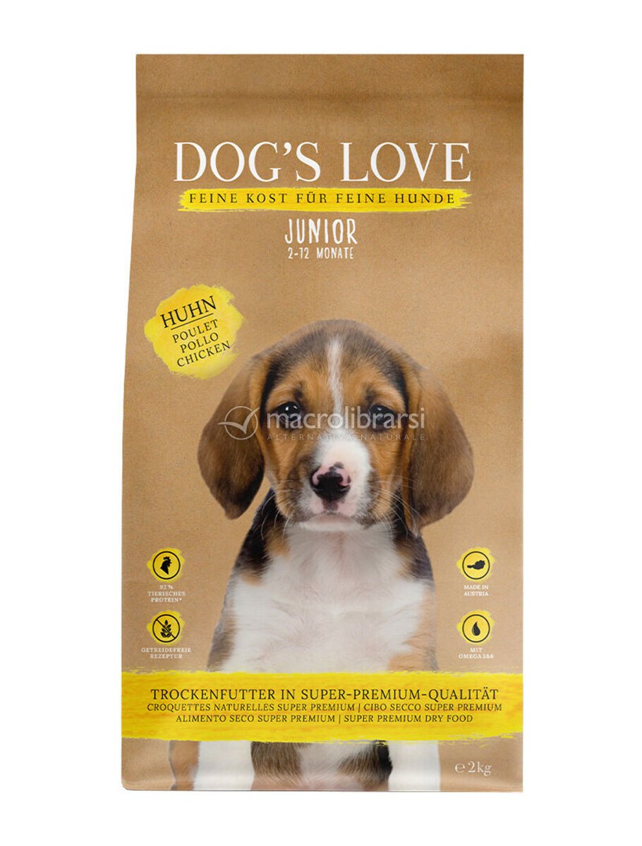 Dog's Love Junior al Pollo è un alimento secco premium senza cereali che assicura un'alimentazione sana e bilanciata a cuccioli e cani giovani di tutte le razze.