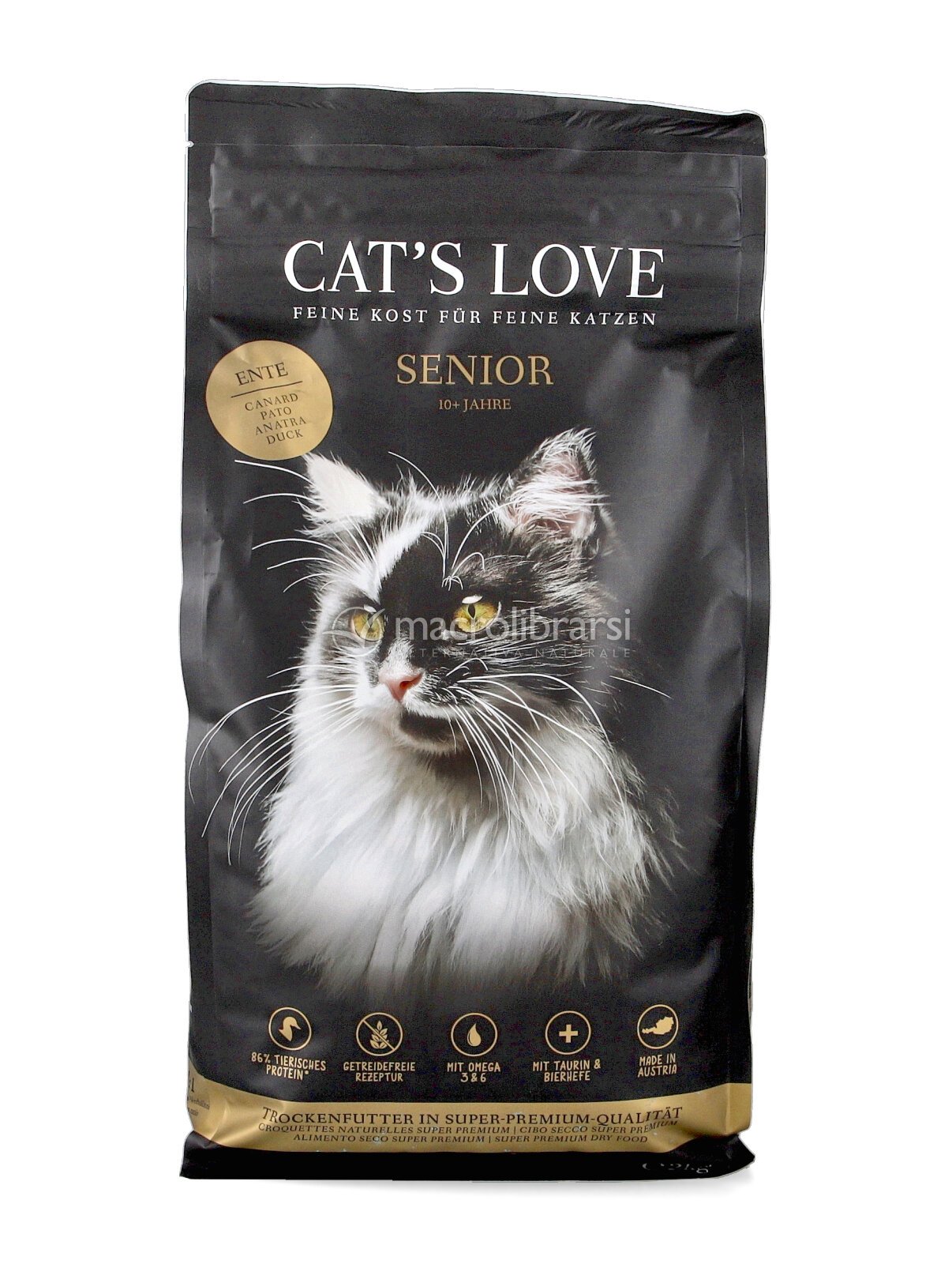 Grazie al loro contenuto ottimale di proteine, adattato al fabbisogno nutrizionale dei gatti anziani, le crocchette all'anatra Cat's Love aiutano il tuo micio a mantenere il peso forma ideale e contribuiscono a salvaguardare la salute delle vie urinarie grazie al moderato contenuto di sostanze minerali.