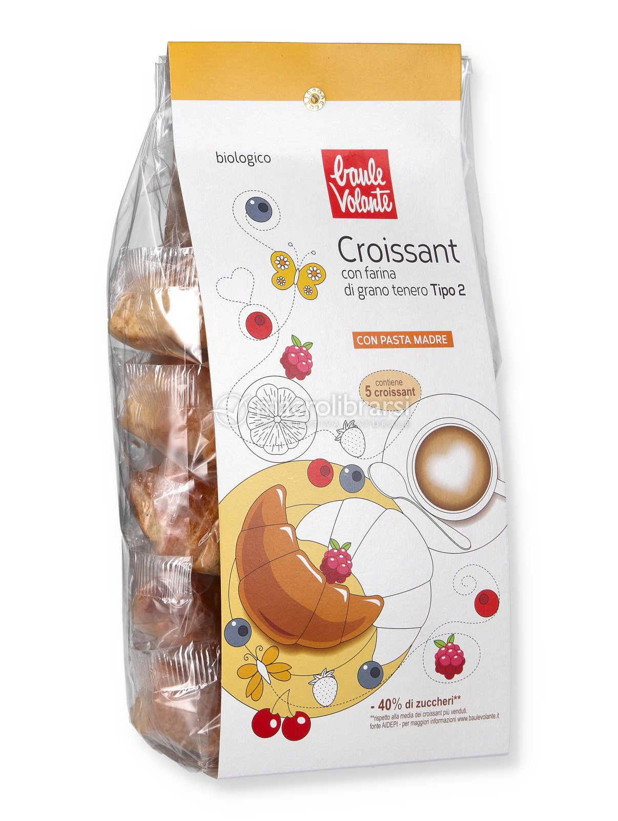 Croissant Biologici realizzati con farina di grano tenero tipo 2, pasta madre, è ricco di fibre e con un basso contenuto di zuccheri (11gr). Perfetto per essere riempito con una buona marmellata biologica, a piacere. E' prodotto in Italia quindi ha un valore incomparabile (compriamo italiano e valorizziamo le piccole-medie Aziende di qualità!). Profumati e gustosi, consigliati.