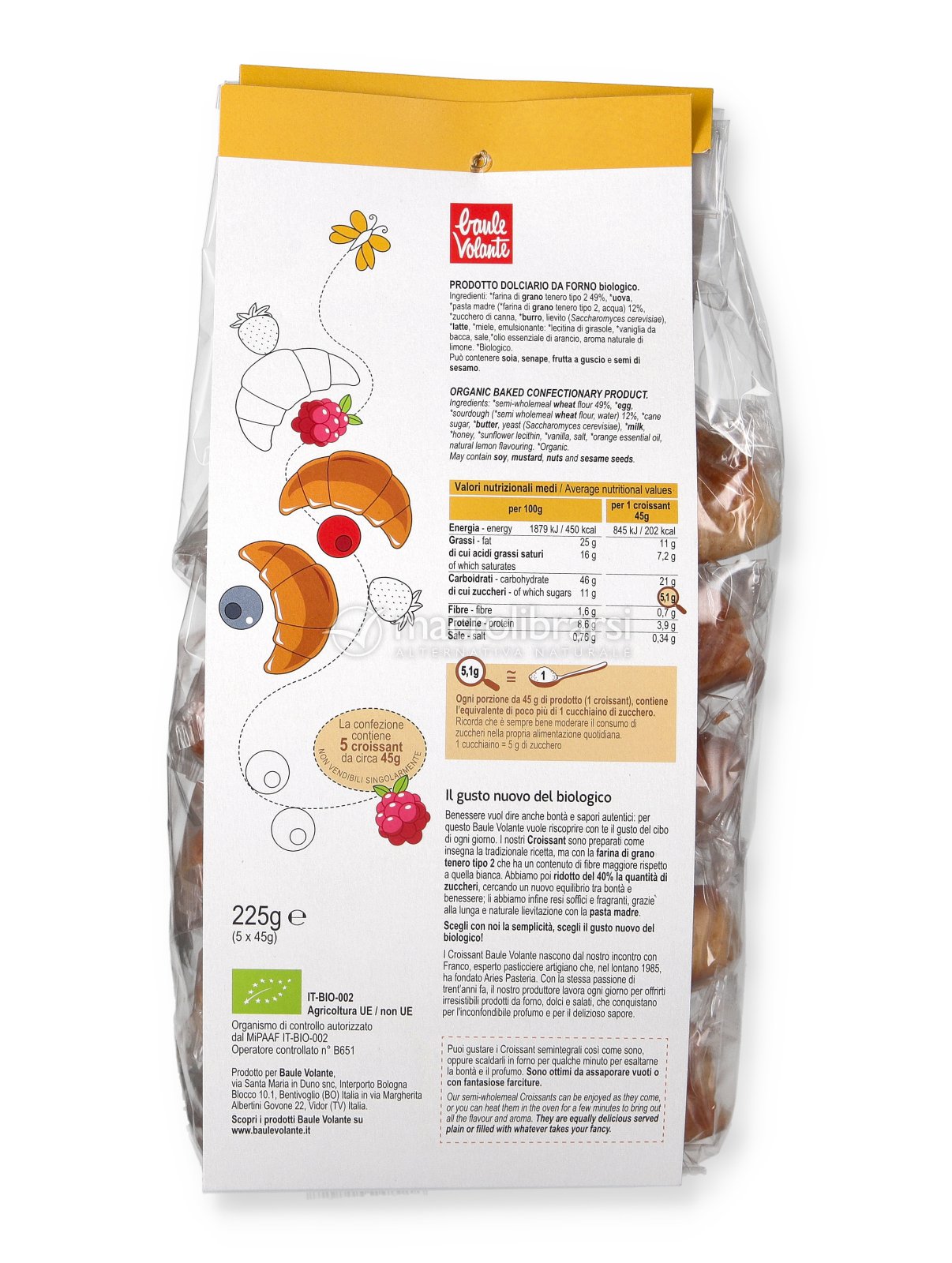 I croissant di Baule Volante sono preparati come insegna la tradizione, con farina di grano tenero di tipo 2 che ha un contenuto di fibre maggiore rispetto alla farina bianca. Inoltre, vi è un 40% di zuccheri in meno!
