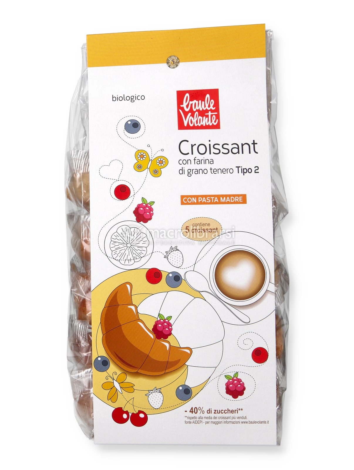 Questi Croissant di Baule Volante sono molto piccoli, soffici e piacevoli da mangiare se accompagnati però da una bevanda o da un succo di frutta, in quanto tendono ad attaccarsi al palato proprio perché molto morbidi. Potrebbero essere migliori se aromatizzati soltanto con bacca di vaniglia, senza la solita aggiunta di olio essenziale e aroma di arancio e limone che alla lunga stancano e rendono le merendine biologiche tutte uguali, e soprattutto dovrebbero essere confezionati con molta plastica in meno; ogni cornetto è impacchettato in una bustina molto più grande del cornettino stesso e poi una busta di plastica più grande li contiene tutti e cinque. Troppa plastica per croissant minuscoli, troppo aromatizzati e con un prezzo abbastanza elevato. Non credo li riacquisterò.